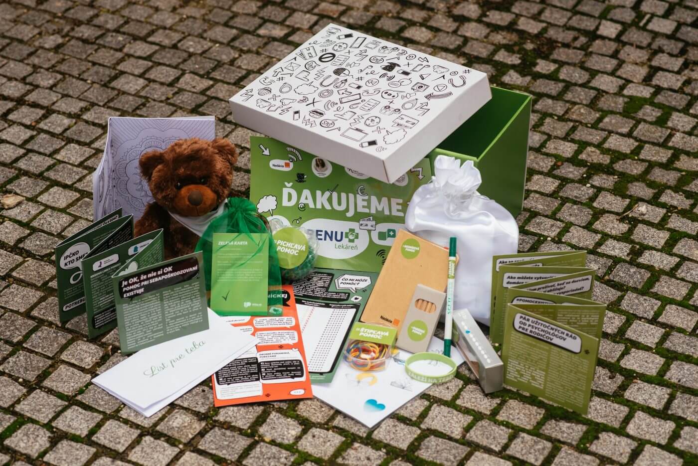 Pro tuto krabičku, která obsahuje řadu zajímavých a užitečných předmětů, jsme dodali plyšového macíka, který nese větu "Jak se máš". Jsou to zásadní slova, která pomáhají mladým, aby se necítili sami, že někoho zajímá to, jak se mají, že je tu někdo, kdo je tu pro ně pořád. Medvídek nemá jméno a proto si jej jeho nový majitel může pojmenovat a mít tak k němu bližší vztah.