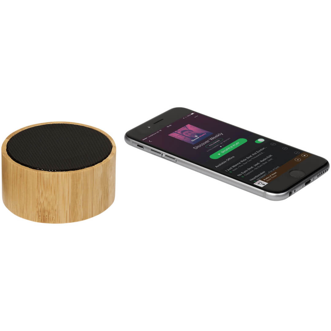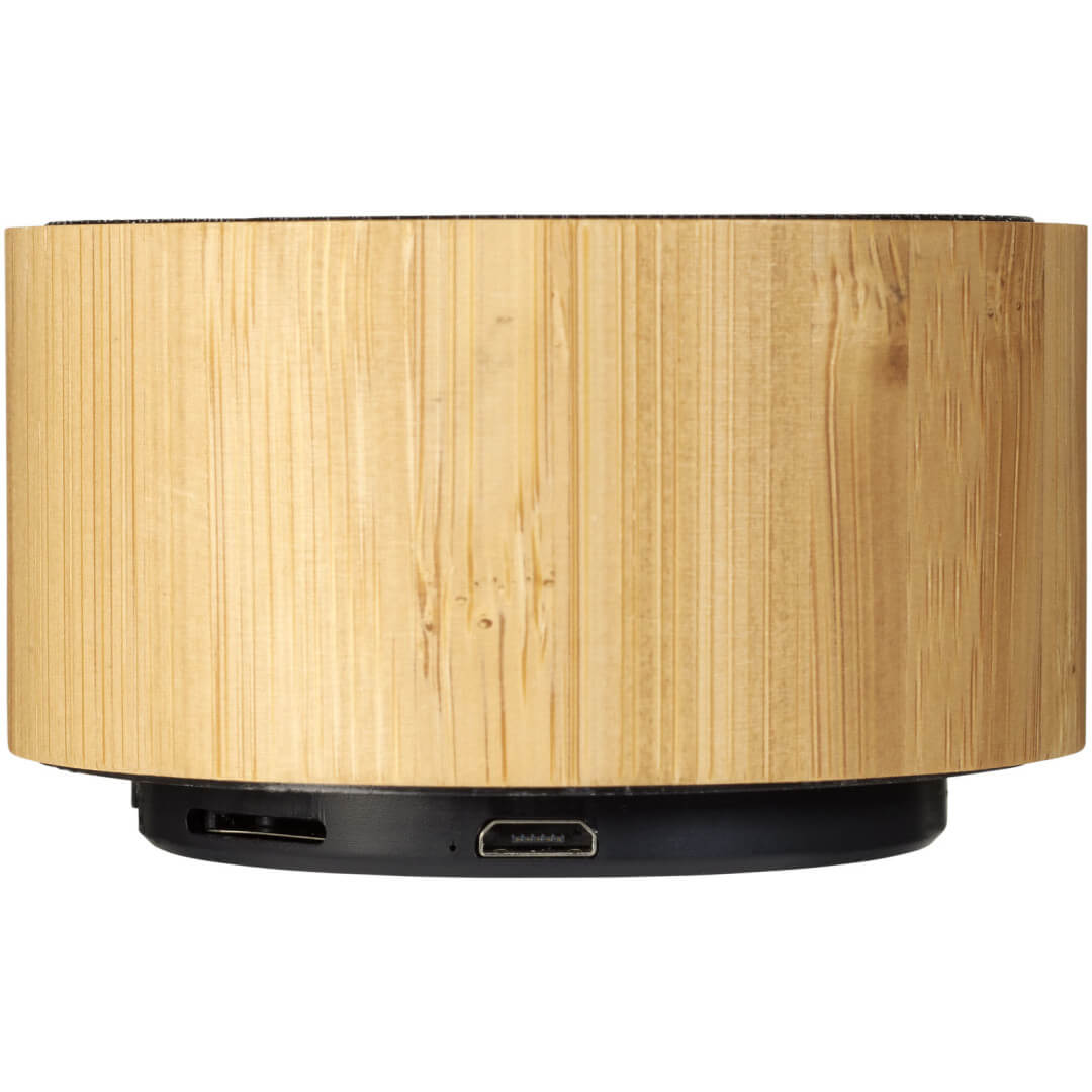 Udržitelnější volba! Bambusový Bluetooth® reproduktor Cosmos zcela jistě upoutá pozornost! Tělo reproduktoru je vyrobeno z bambusu a díky výkonu 3 W produkuje křišťálově čistý zvuk, který můžete na maximální hlasitost poslouchat přibližně dvě hodiny. Reproduktor také obsahuje multimediální rádiový tuner FM, vstup na karty Micro SD a USB vstup. Jinými slovy, hudbu lze přehrávat z rádia, karty Micro SD nebo z flash disku. Vestavěné ovládání hudby a mikrofonu pro obsluhu bez použití rukou. Bluetooth verze 4.2 s pracovním dosahem 10 metrů (33 stop). Bambusové dřevo.