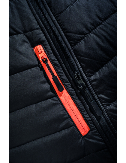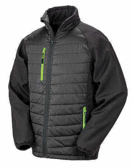 Materiál těla: vnější strana: 100 % recyklovaný polyester JIAREN®, výplň: 100 % recyklovaný polyester REPREVE® 180 g/m², podšívka: 100 % polyester. Materiál rukávu: 280 g/m² 2vrstvá mechanická příze softshell obsahující: vnější vrstva – 60 % polyester / 40 % recyklovaný polyester TOPGREEN®, vnitřní vrstva – 70 % polyesterový mikroflís / 30 % recyklovaný polyester TOPGREEN®. Odolné vůči větru, Prodyšné. Kontrastní kapsy na zip. Zip YKK s ochranou brady vepředu po celé délce. Polstrovaný stojáček. Polstrované tělo. Měkká vázaná manžeta. Černé šňůrky zipu. Závěsný štítek. Funkční recyklovaný materiál polstrování REPREVE® s použitím ekologických materiálů z recyklovaných plastových lahví a průmyslového odpadu. Ekologický softshellový polyester TOPGREEN®, potisknutelné ramenní panely. Připraveno k opatření značkou. Vyrobeno z 14 (1litrových) plastových lahví.