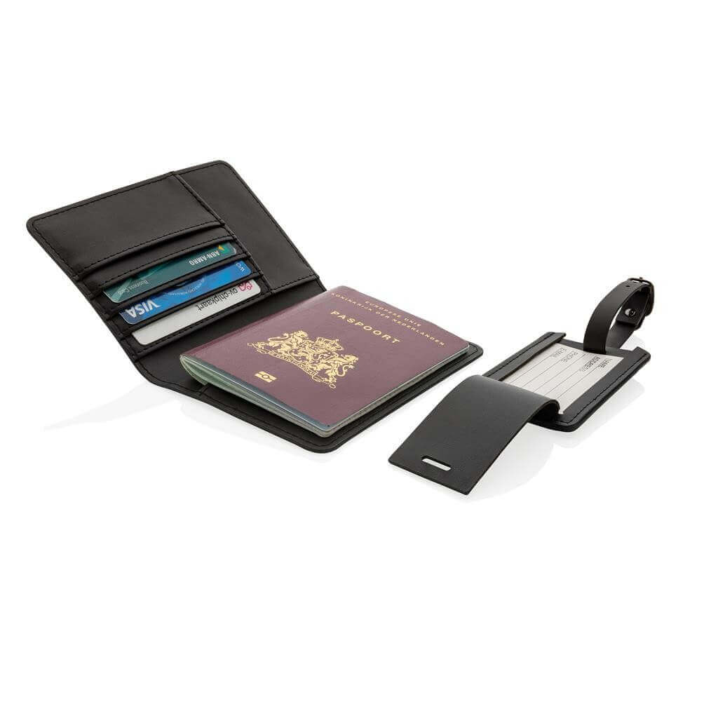 Praktická sada cestovní peněženky a zavazadlového štítku Swiss Peak vyrobená z GRS recyklovaného PU. GRS (Global Recycle Standard) je globální standard, který umožňuje ověřit použití recyklovaného materiálu v produktu napříč celým dodavatelským řetězcem. Celkový podíl recyklátu dle váhy produktu: 70 %. Peněženka nabízí dostatek prostoru pro bezpečné uchování cestovních dokladů, které jsou přesto stále pohodlně po ruce. Štítek ladí s peněženkou. Baleno v elegantní FSC® Swiss Peak dárkové krabičce.