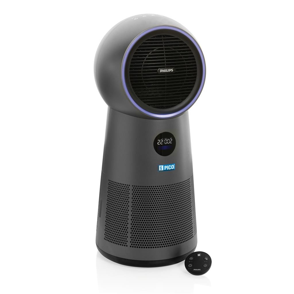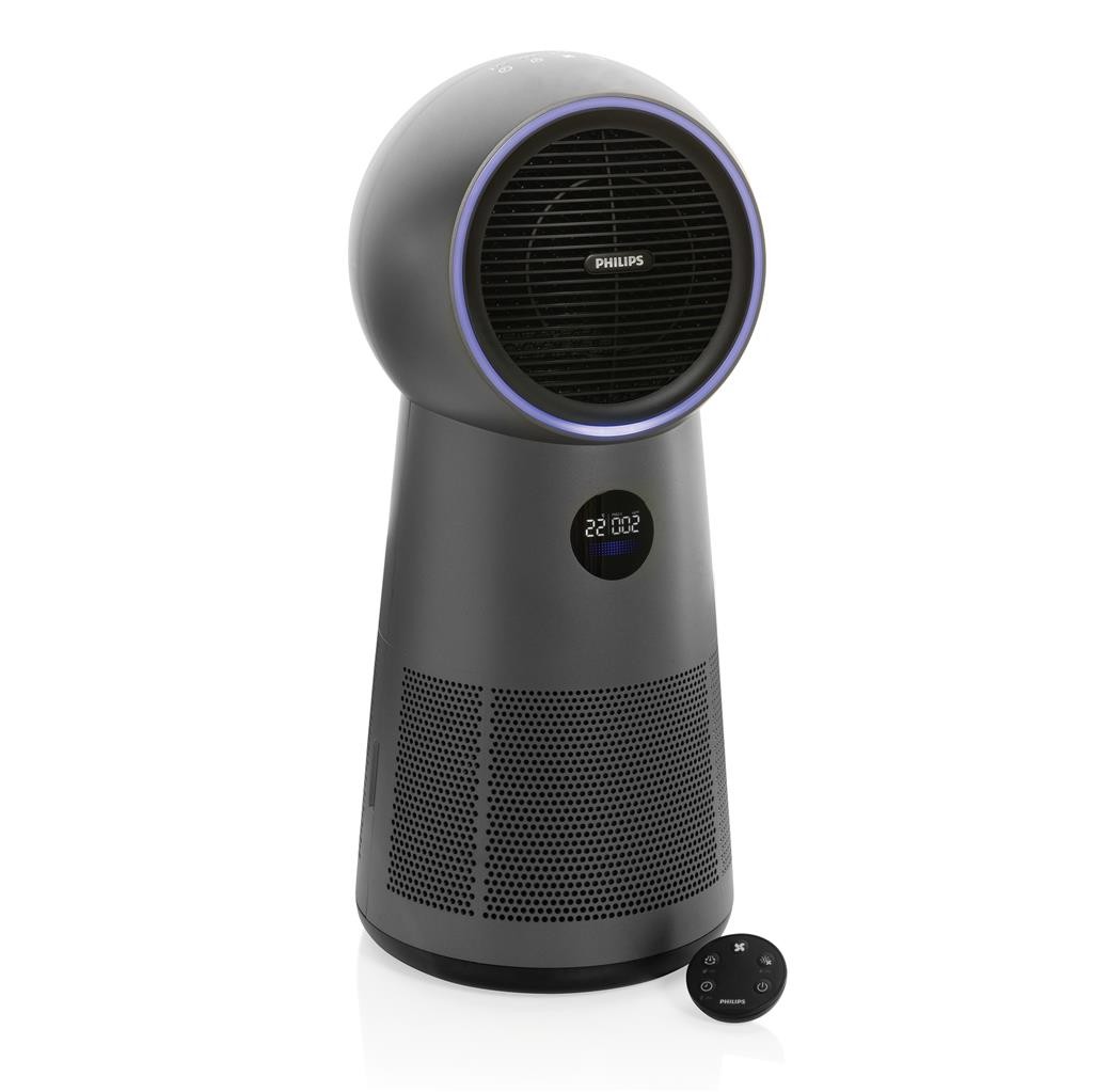 Multifunkční čistička vzduchu s ventilátorem a ohřívačem. Zaměřuje se tedy na podmínky v domácnosti týkajících se kvality a čistoty vzduchu, chlazení a ohřev. HEPA filtr zajišťuje čištění vzduchu od virů, alergenů a dalších nečistot. Otočná hlava čistý vzduch distribuuje až v 350°. Zároveň lze v teplých dnech nastavit režim chlazení nebo naopak v chladných dnech nastavit ohřev. Pro podrobné informace přejděte na www.philips.com a vyhledejte "AMF 220".