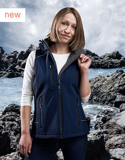 Vesta | Odnímatelná a nastavitelná kapuce | Nepromokavé zipy | Ochrana brady | Napoleonská kapsa | Stahovací šňůrka na lemu s vnitřní zarážkou | Prodloužená zadní část se zakulaceným lemem | 2 boční kapsy na zip | Všitý přívěšek na klíče v postranní kapse | Reflexní lemování a stahovák na zip | Dělící švy | Neutrální štítek s velikostí | Prodyšná, nepromokavá (8 000 mm), odolná proti větru | Bi-elastický softshellový lepený flís. Vnější část: 95% polyester / 5% elastan, vnitřní část: 100% polyester.