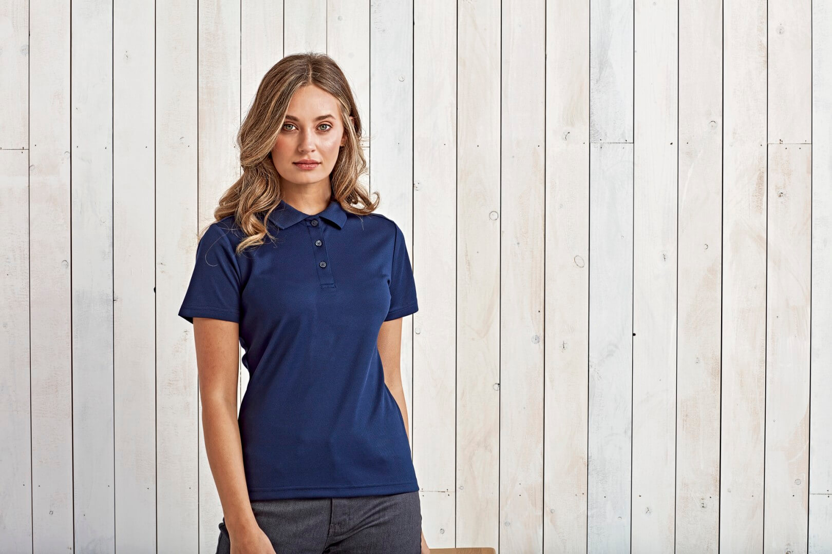 Recyklovaný polyester ze spotřebitelských plastů | Polyesterová příze recyklovaná technologií spun-dyed | Žebrovaný límec | Tříknoflíková léga | Boční průduchy, prodyšné | Odvádění vlhkosti | Vynikající stálost barev vůči UV záření | Proces barvení šetrný k životnímu prostředí s nižší spotřebou vody a méně chemikáliemi a nižšími emisemi CO2