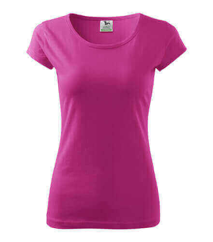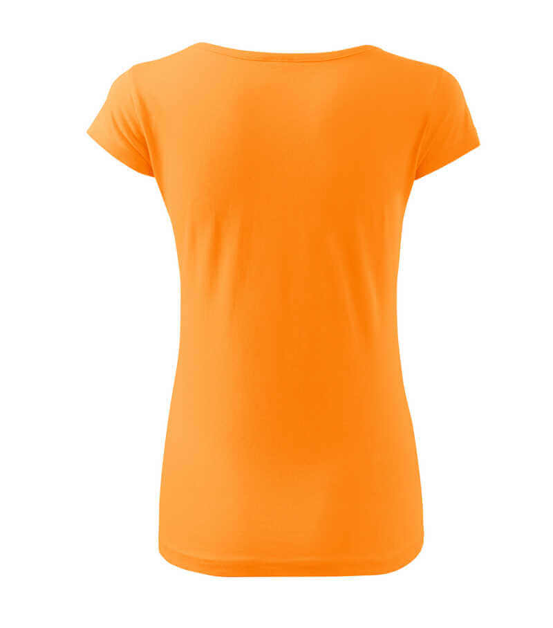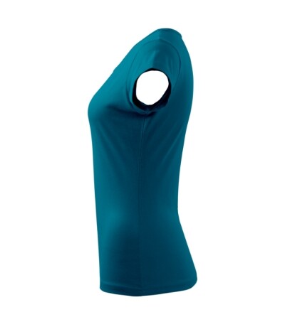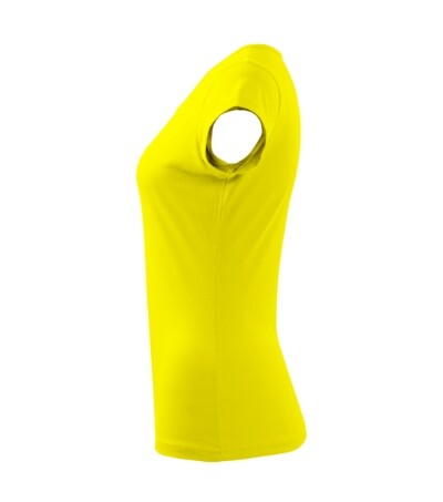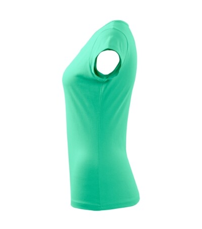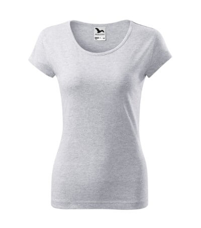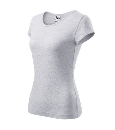 Dámské triko s velmi krátkým rukávem. Volný kulatý průkrčník s úzkým lemem ze shodného materiálu. Ramena zpevněné všitým proužkem. Tričko má délku do hloubky boků. Silikonové změkčovadlo zajišťuje splývavost a měkkost na dotek. Vhodné pro potisk a výšivku.