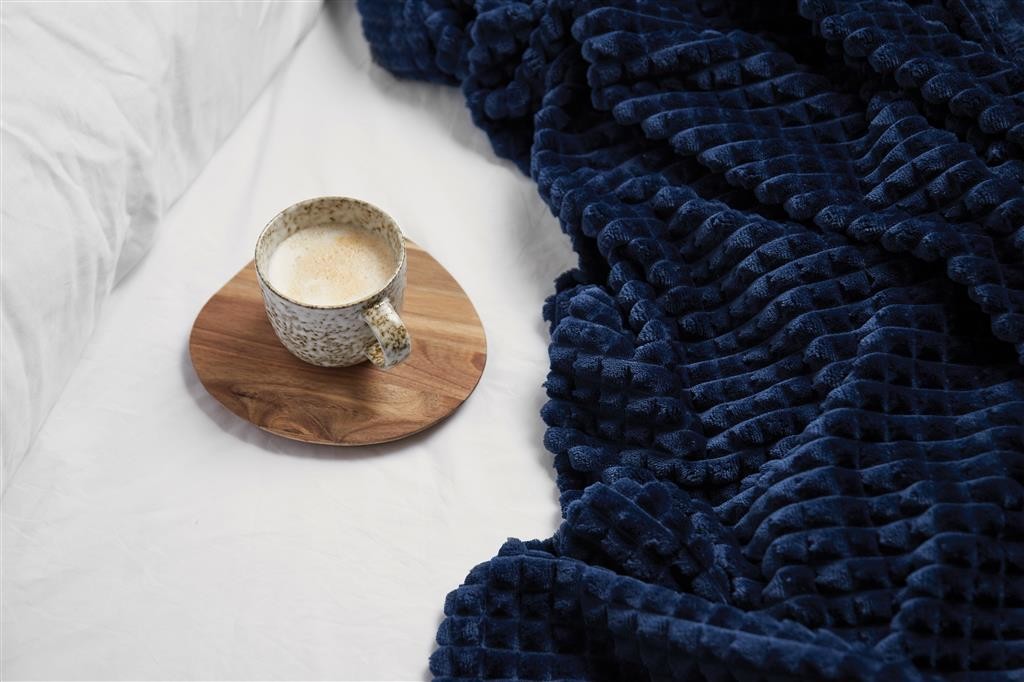 Stylová deka s čtvercovým vzorem vyrobená z GRS recyklovaného polyesteru. GRS (Global Recycle Standard) je globální standard, který umožňuje ověřit použití recyklovaného materiálu v produktu napříč celým dodavatelským řetězcem. Celkový podíl recyklátu dle váhy produktu: 69 %. OEKO-TEX 100 zajišťuje soulad s řadou bezpečnostních kritérií.