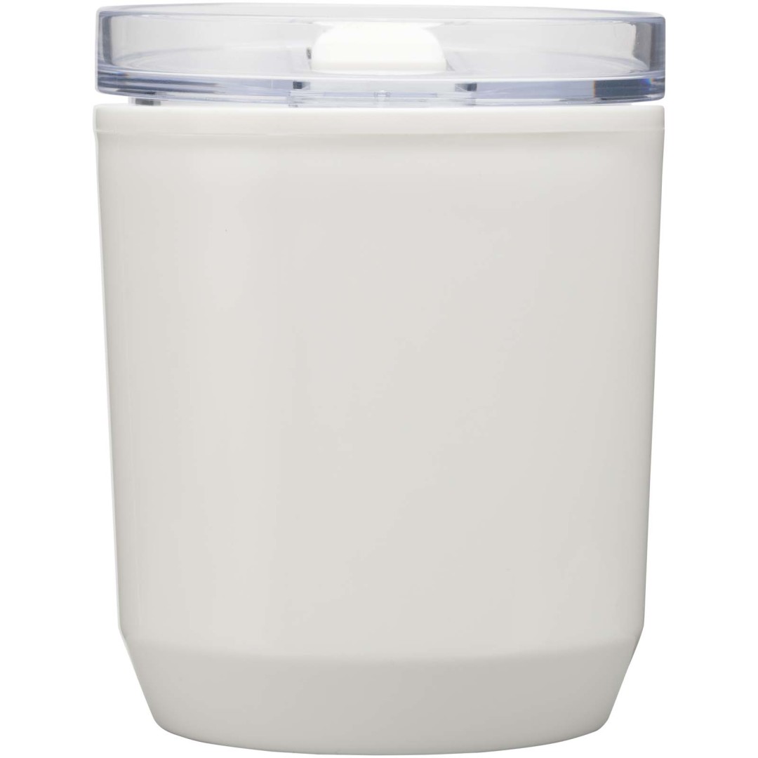 Hrnek s jednoduchým designem, která pasuje do většiny kávovarů a držáků nápojů v autě. Má konstrukci s dvojitou stěnou s vnějším povrchem z recyklovaného PP plastu a vnitřkem z PP plastu. Posuvné víčko je vyrobeno z AS a PP plastu. Objemová kapacita: 180 ml.