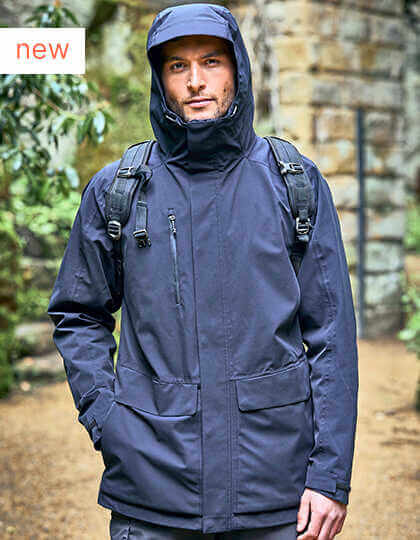 Membránový polyesterový streč AquaDry s úpravou EcoShield DWR schválený EN343 Bluesign | Polyesterová pružná síťovina a podšívka z recyklovaného polyesterového taftu | Recyklované podlepené zipy u všech kapes kromě vnější náprsní kapsy | Délka 84 cm | 6 kapes | 2 spodní kapsy se zapínáním na patentky s podlepenými klopami a boční teplé kapsy na zip | 1 vodotěsná náprsní kapsa na zip | 1 vnitřní kapsa na mapu | Chlopeň proti větru na patentky s chráničem vnitřního zipu | Vnitřní nastavovače lemu se stahovací šňůrkou | Neodnímatelná kapuce s nastavovacími pojistkami vpředu a nastavovačem vzadu | Nastavovače podlepených manžet ze stejné látky | Vnitřní zip pro přístup k logu | Vodotěsnost 10 000 mm a prodyšnost 20 000 g | Na výrobu tohoto produktu bylo použito přibližně 130 g recyklovaného materiálu.