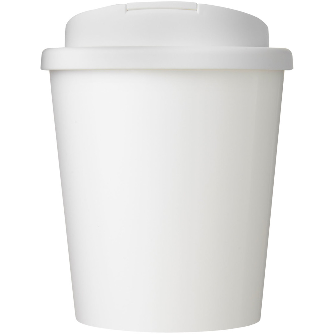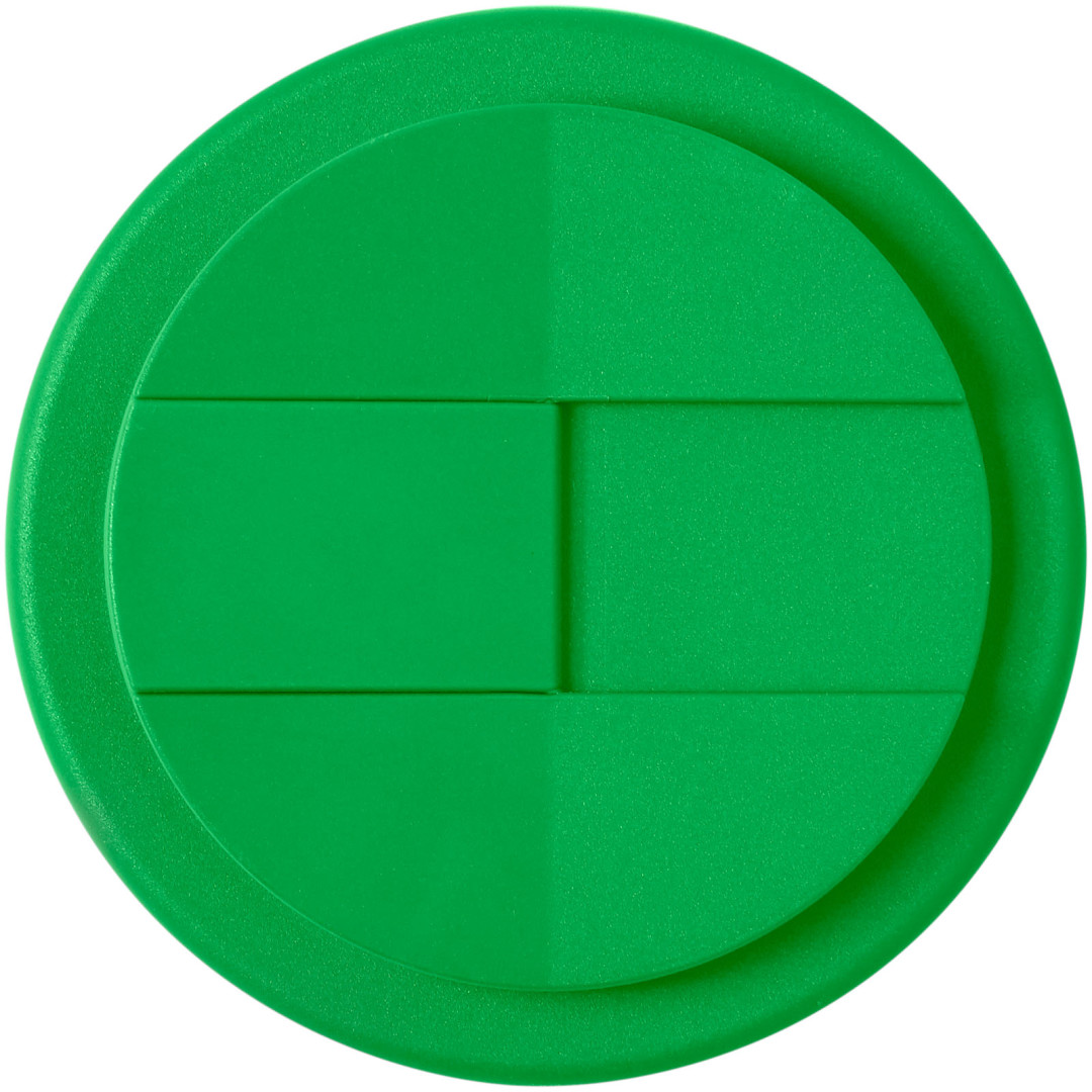 Dvouplášťový hrnek s tepelnou izolací, otočným víčkem odolným proti rozlití a plnobarevným designem nalisovaným na výrobek. Hrnek je vyrobený z celkem 65% recyklovaného materiálu (recyklovaný hrnek a černý vnitřek) a má standardní plastové víčko. Hrnek je plně recyklovatelný a vhodný do myčky a mikrovlnné trouby. Objemová kapacita: 350 ml. Neobsahuje BPA. Obal lze kompostovat v domácím kompostéru. Vyrobeno ve Spojeném království.