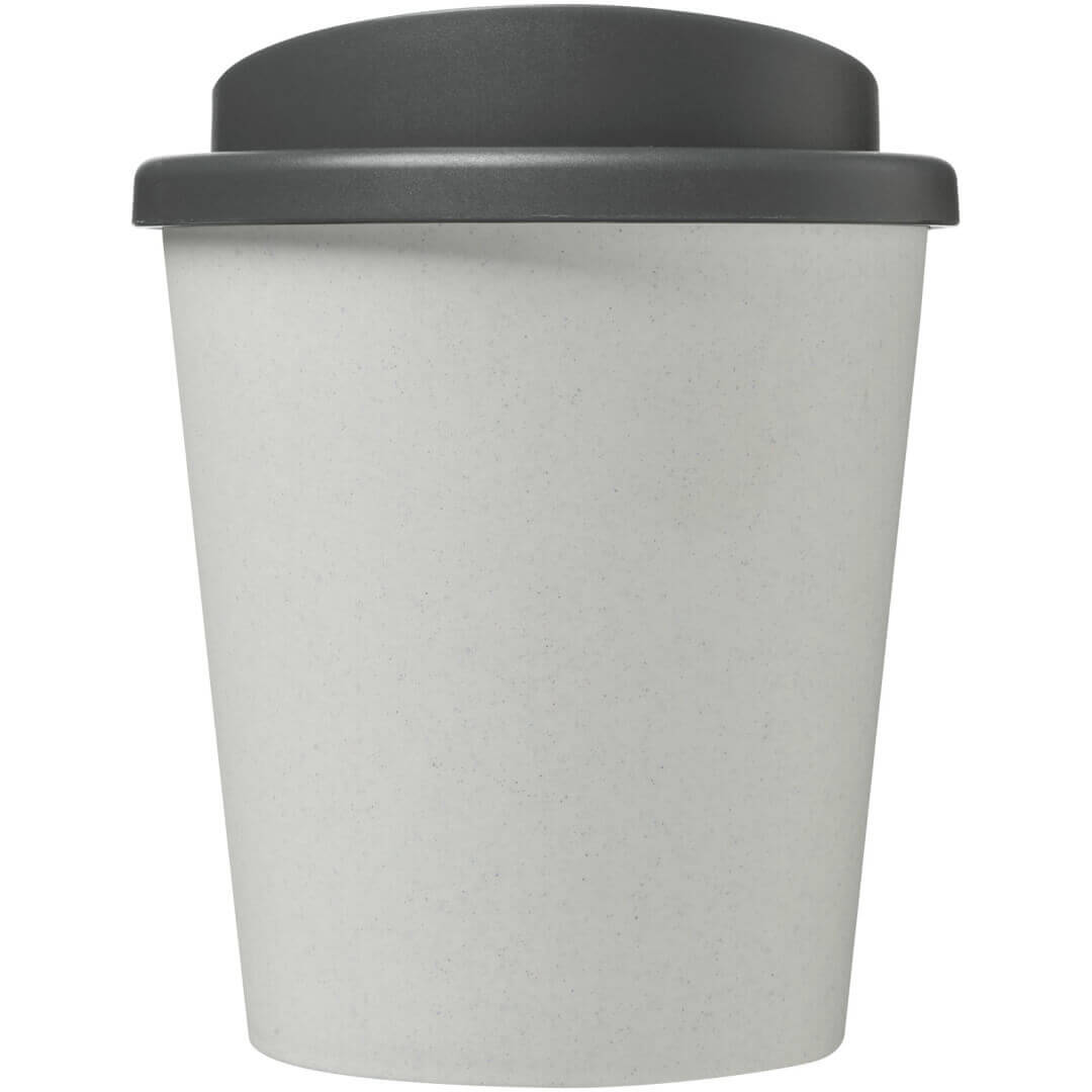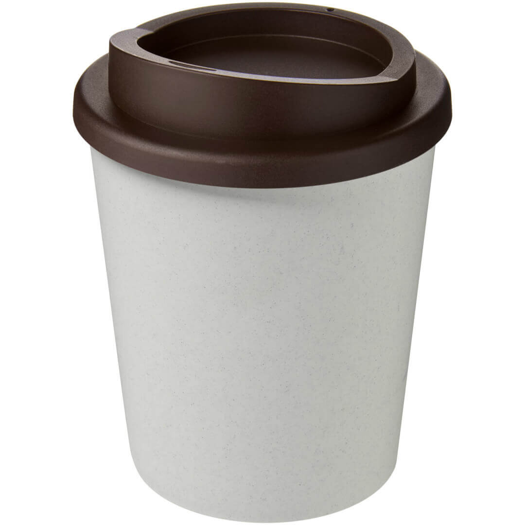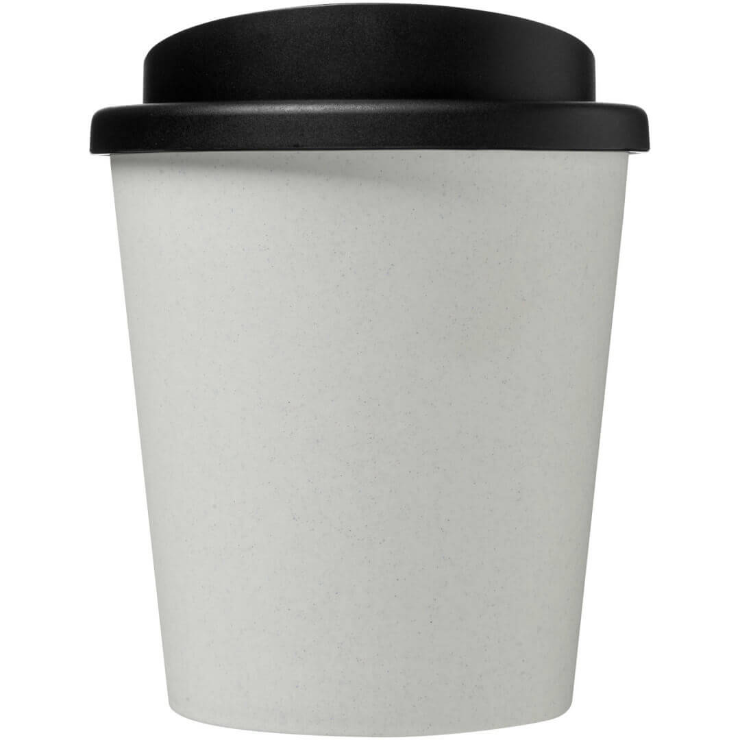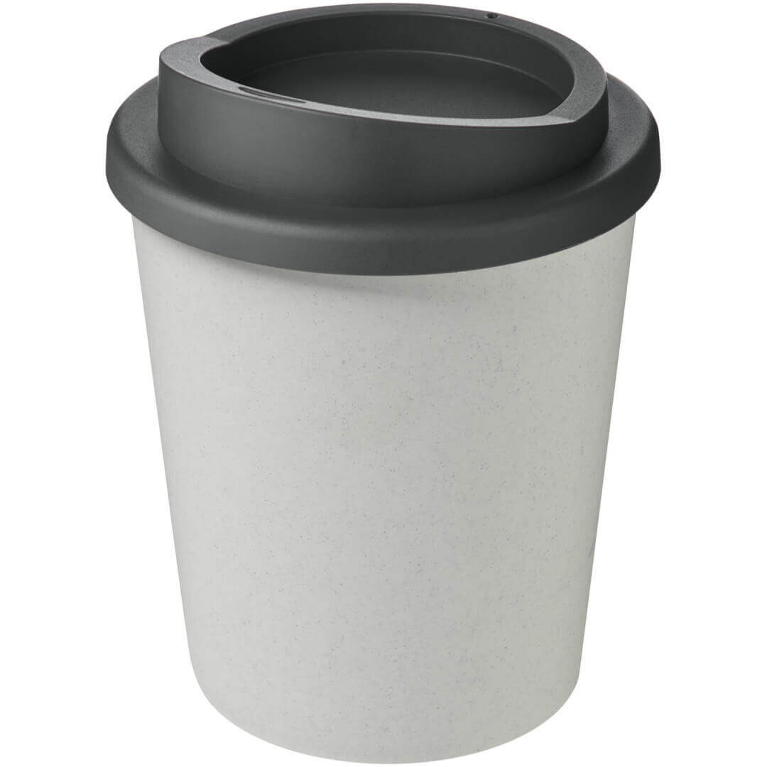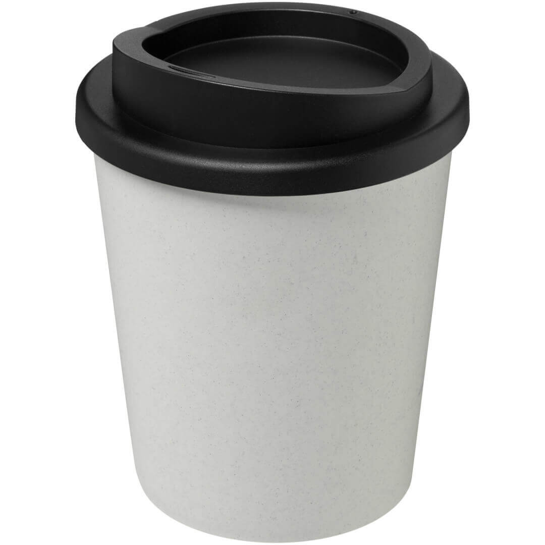 Hrnek s tepelnou izolací, dvojitou stěnou a otočným víčkem. Vejde se do většiny kávovarů. Kelímek je vyroben ze 100% recyklovaného PP plastu, víčko je vyrobeno z potravinářského PP plastu. Vzhledem k tomu, že víčko není vyrobeno z recyklovaného materiálu, lze jej objednat v široké škále různých barev. Hrnek je plně recyklovatelný. Odstín černé barvy na kelímku se může lišit v závislosti na použitém recyklovaném materiálu. Objem je 250 ml. Vyrobeno ve Spojeném království. Obal lze kompostovat v domácím kompostéru.