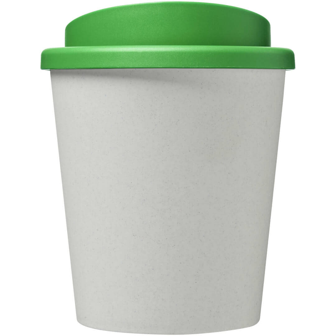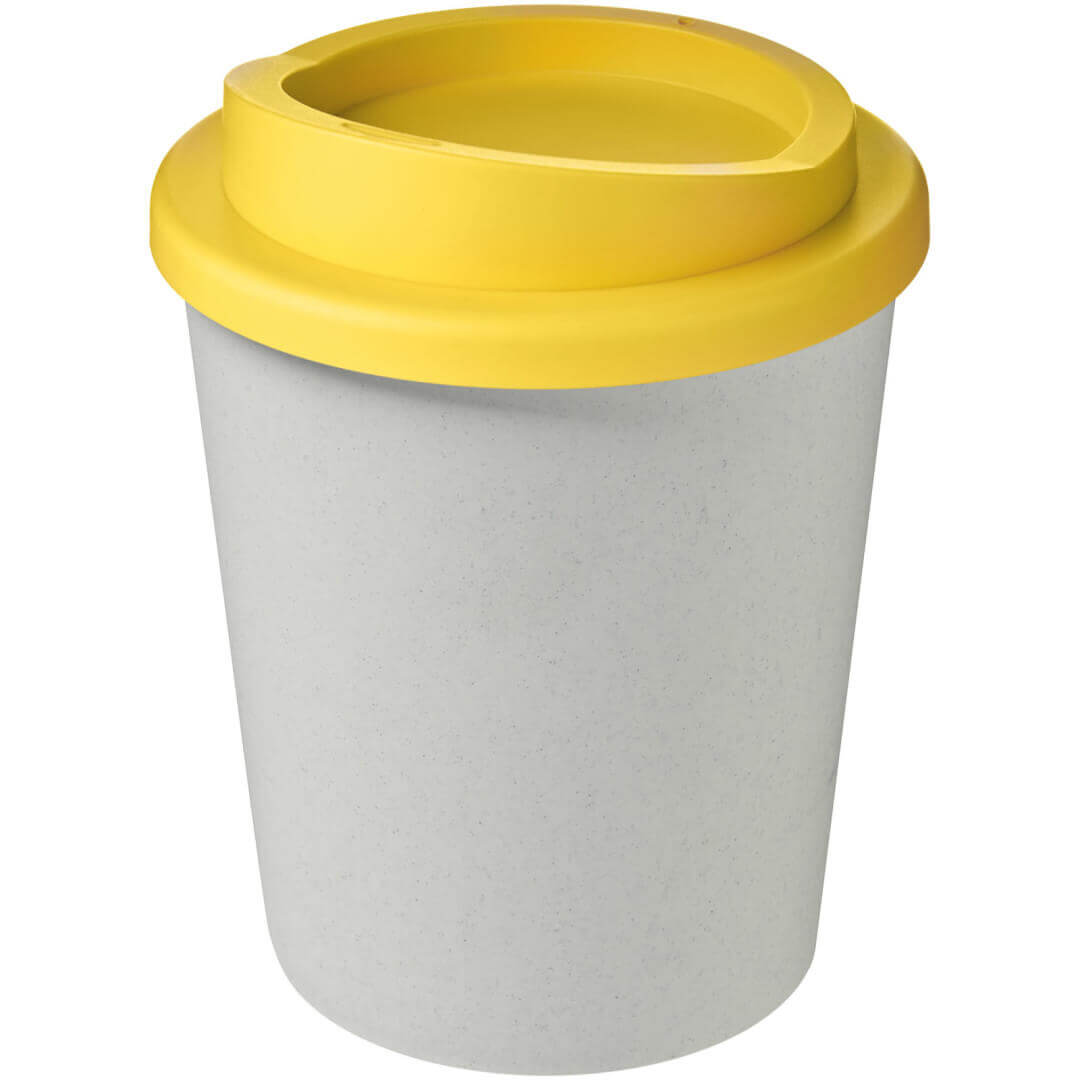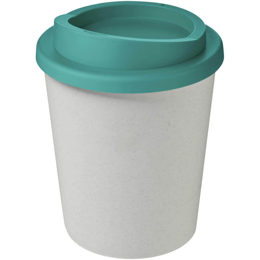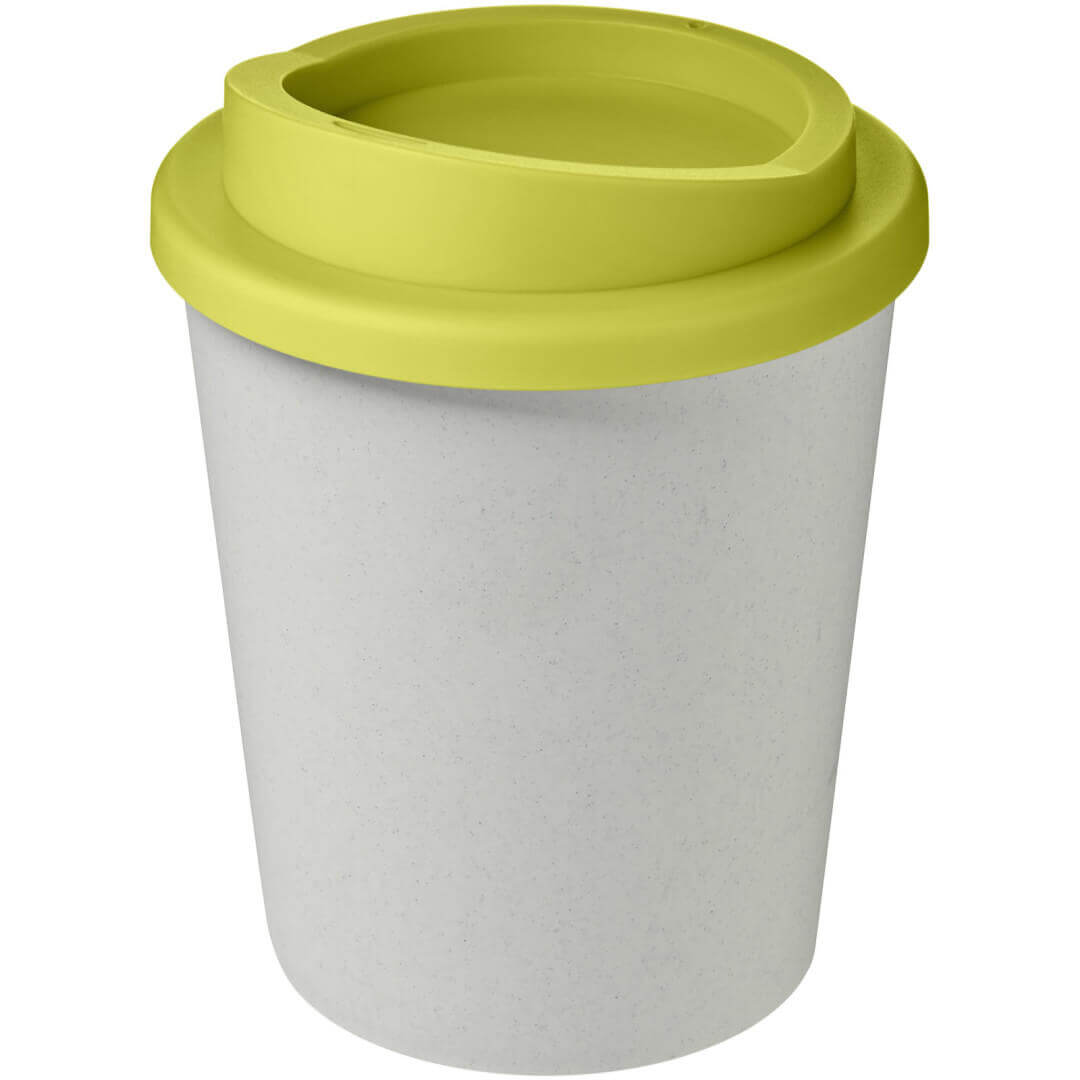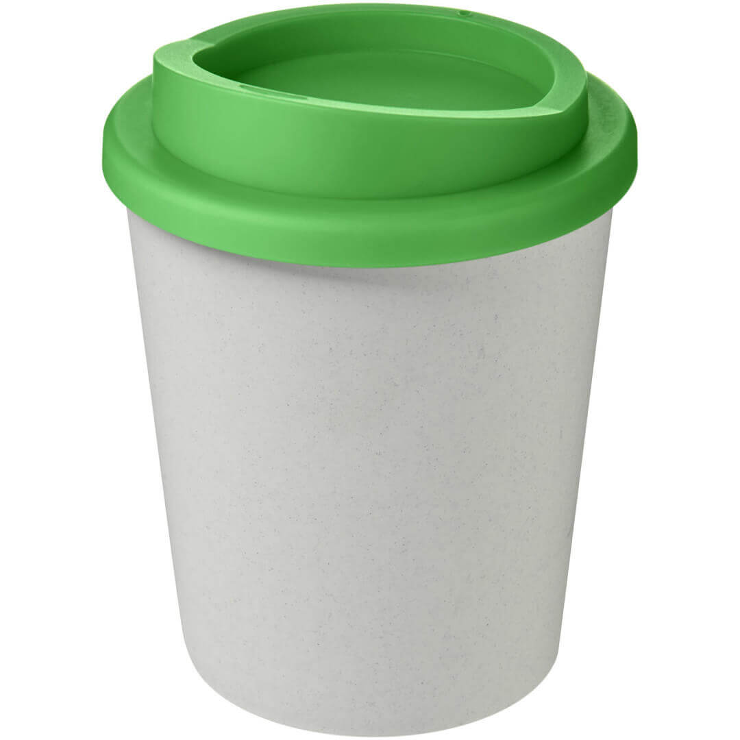 Hrnek s tepelnou izolací, dvojitou stěnou a otočným víčkem. Vejde se do většiny kávovarů. Kelímek je vyroben ze 100% recyklovaného PP plastu, víčko je vyrobeno z potravinářského PP plastu. Vzhledem k tomu, že víčko není vyrobeno z recyklovaného materiálu, lze jej objednat v široké škále různých barev. Hrnek je plně recyklovatelný. Odstín černé barvy na kelímku se může lišit v závislosti na použitém recyklovaném materiálu. Objem je 250 ml. Vyrobeno ve Spojeném království. Obal lze kompostovat v domácím kompostéru.