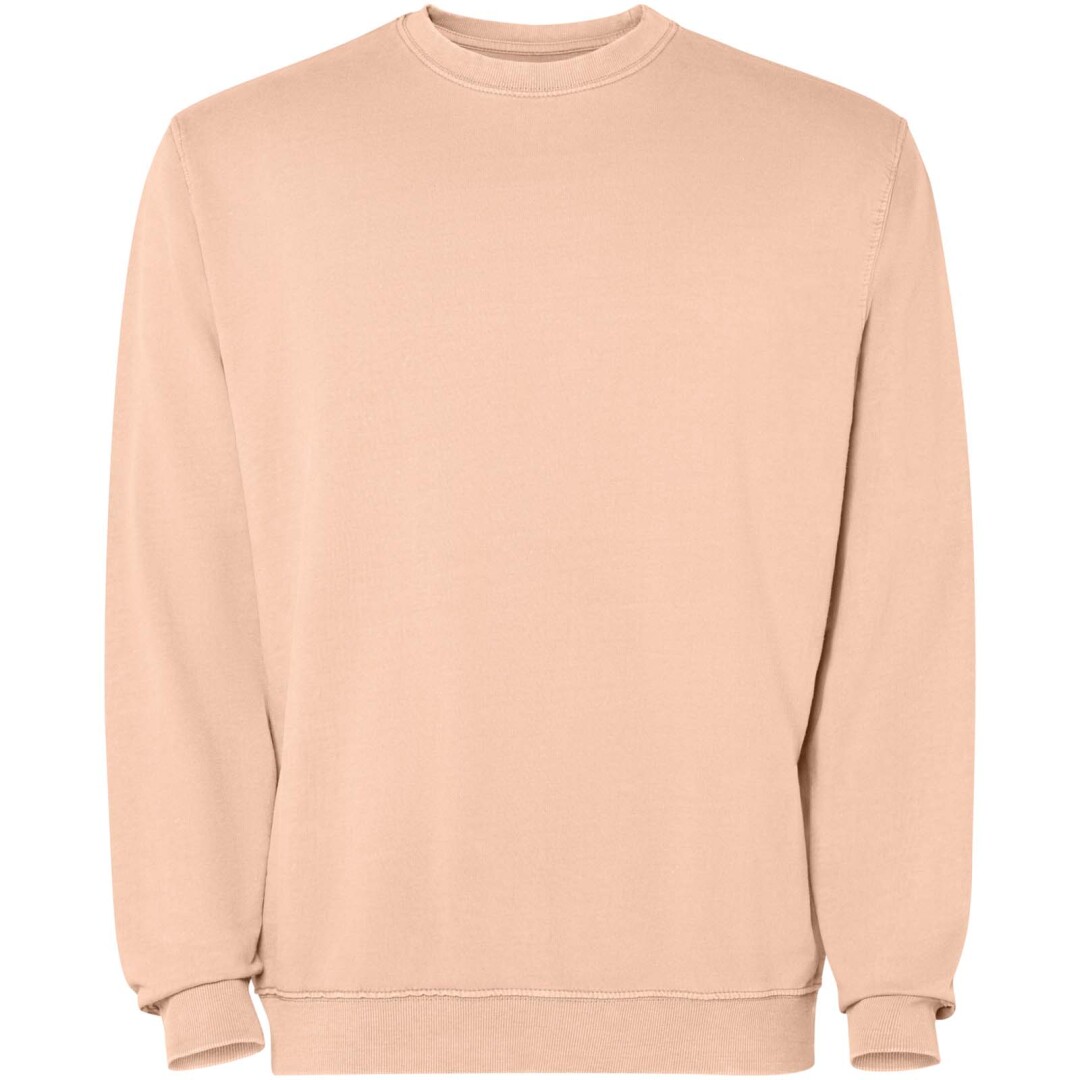 Unisex svetr se sepraným vzhledem. Límec s žebrováním 2 × 1, manžety a lem v tónu látky. Zesílené švy na manžetách, lemu, pase a průramcích. Krycí steh v tónu látky u krku.