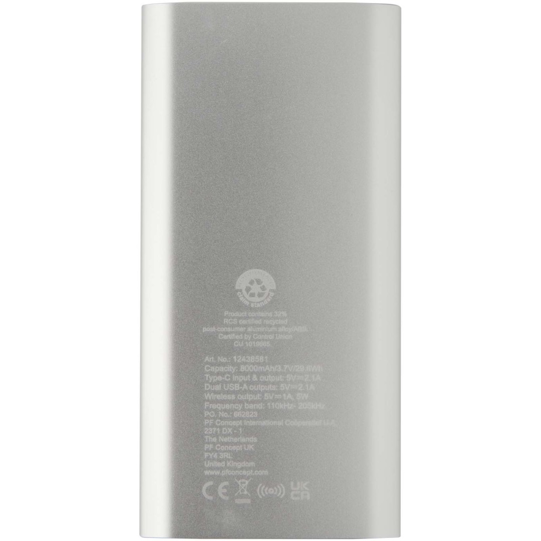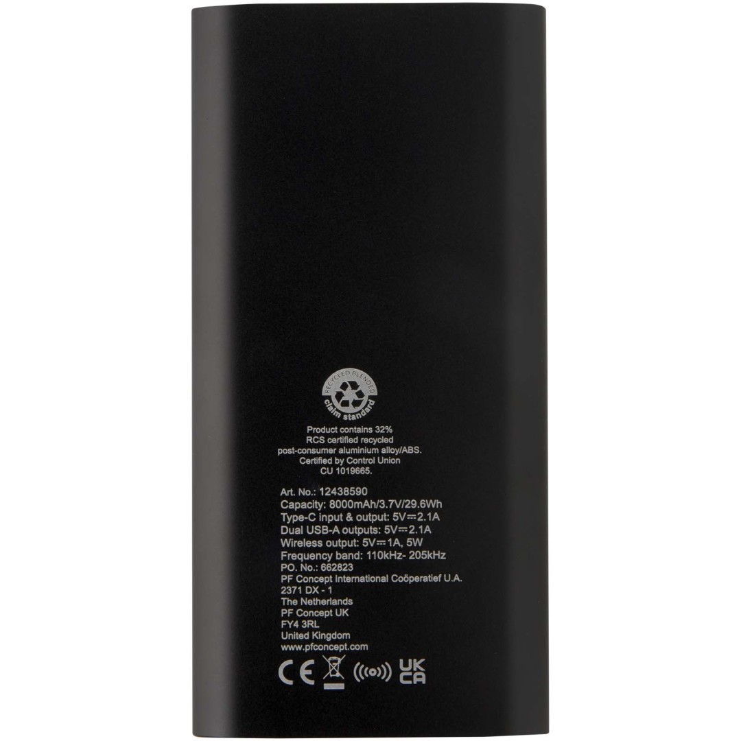 Powerbanka se vstupním/výstupním portem typu C a dvěma porty USB typu A, což znamená, že lze nabíjet 3 zařízení současně. Podporuje také 5W bezdrátové nabíjení pro všechna zařízení s podporou Qi. Powerbanka je vybavena 8000mAh lithium-polymerovou baterií, která poskytuje maximální celkový výstupní výkon 10 W. Tato powerbanka je vyrobena z 28 % z recyklovaného plastu s certifikací RCS. Dodáváno s nabíjecím kabelem TPE typu C na USB typu A.