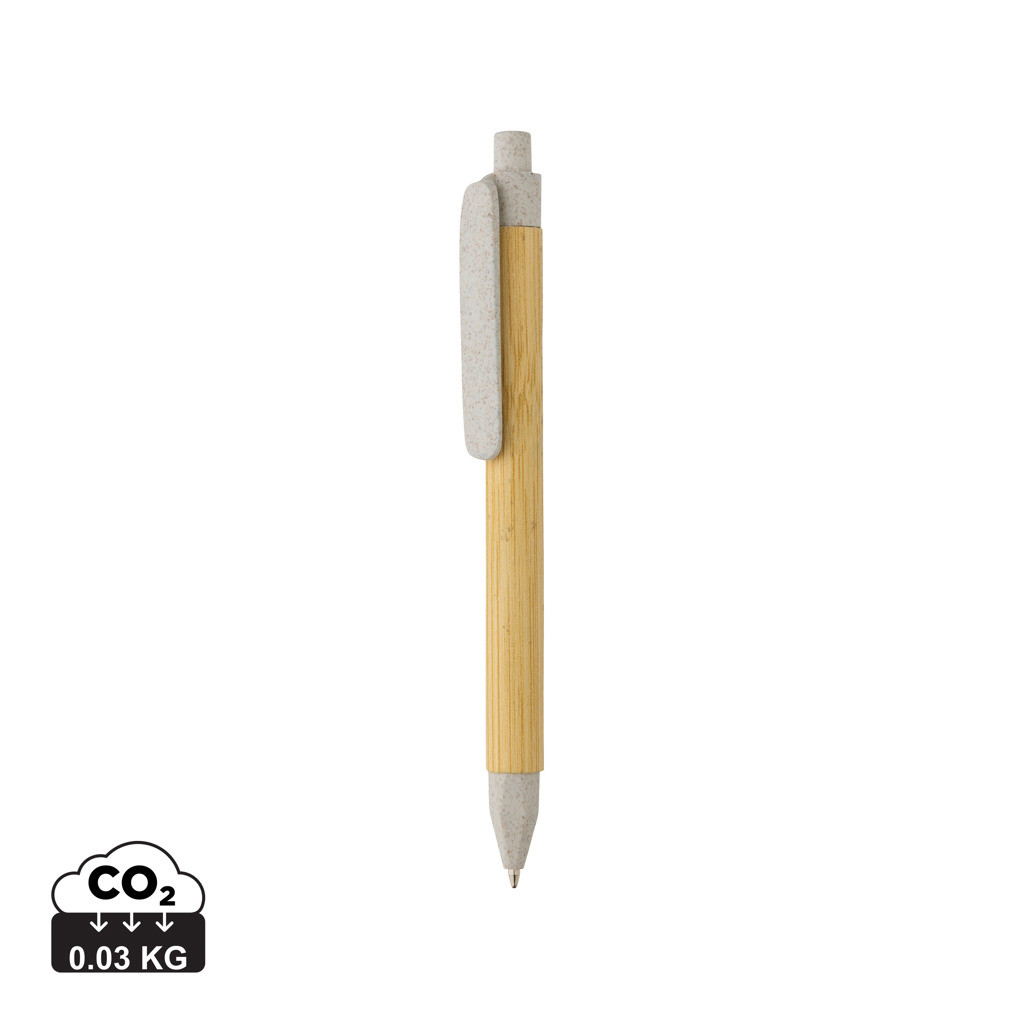 Moderní kuličkové pero vyrobené z FSC®recyklovaného papíru. Zpracování, které připomíná přírodní bambus. Klip vyrobený z pšeničné slámy. Německá náplň s modrým inkoustem Dokumental® pro psaní až 1 000m textu. TC kulička pro opravdu příjemné psaní.