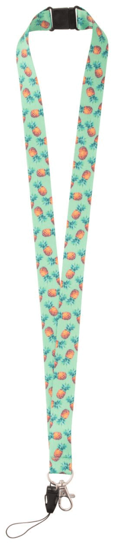 Polyesterový lanyard na zakázku s kovovou karabinkou, šňůrkou na mobil a bezpečnostní přezkou. Se sublimačním potiskem na obou stranách. Cena nezahrnuje tiskovou přípravu. Min. mn.: 100 ks.
