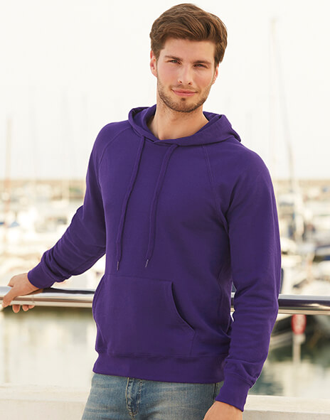 ·240 g/m2 ·80% bavlna (vlákno Belcoro), 20% polyester ·lehký nečesaný flís ·kapuce s plochou stahovací šňůrkou ve stejné barvě ·raglánové rukávy ·klokaní kapsa ·žebrované manžety a lem (bavlna/Lycra) ·vlákno Belcoro - měkký materiál a snadnější potisk