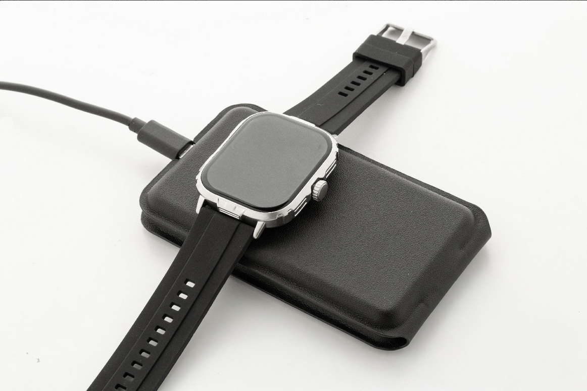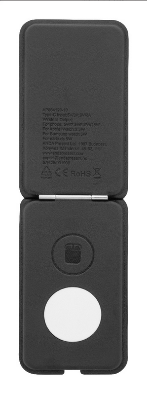 Luxusní skládací držák na mobilní telefon a bezdrátová nabíjecí sada z recyklované PU kůže. S magnetickou bezdrátovou rychlonabíječkou (15 W), bezdrátovou nabíječkou (5 W) pro sluchátka (pouze Apple®) a bezdrátovou nabíječkou (2,5 W) pro inteligentní hodinky (Apple® a Samsung®). Včetně samolepícího kovového kroužku pro použití magnetické funkce na jakémkoli bezdrátově nabíjecím zařízení. Kompatibilní s iPhone® 12 nebo novějším. Včetně USB nabíjecího kabelu. ezdrátové připojení: Ano. USB kabel je součástí balení: Ano