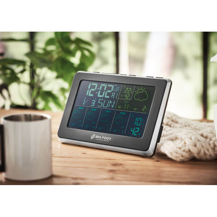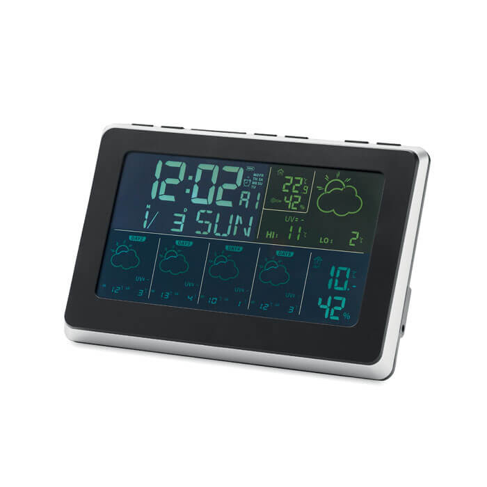Meteo Wi-Fi stanice s barevným displejem zobrazující budík, teplota, čas, předpověď počasí. Součástí není 5 baterií AAA. Vč. adaptéru AC-DC se 2 kolíky do zástrčky EU. Není vhodné pro použití ve VB. Mějte přehled o aktuálním a nadcházejícím počasí s touto užitečnou pokročilou meteorologickou stanicí.