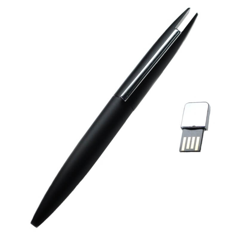 Designový USB flash disk s propiskou, kov. Vhodný pro tampon tisk. Možno umístit do elegantní kovové krabičky. Ideální dárek pro konference, prezentace, apod.