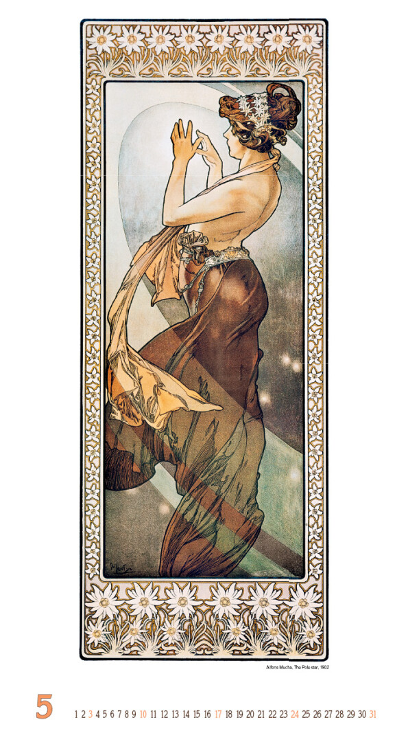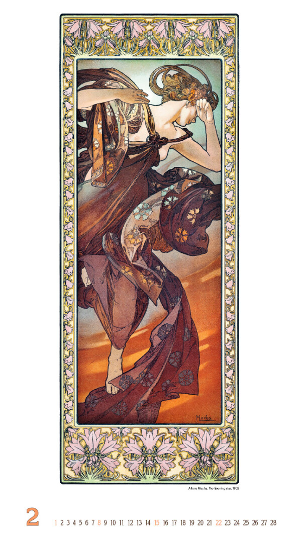 Objevte jedinečný svět secese prostřednictvím kalendáře věnovaného jednomu z jejích největších mistrů - Alfonsi Muchovi. Každý měsíc vás okouzlí ikonickými díly plnými jemných linií, bohatých ornamentů a ženského půvabu. Kalendář je vizuální oslavou elegance, harmonie a uměleckého ducha přelomu 19. a 20. století. Skvělý dárek pro milovníky výtvarného umění, historie a nadčasového designu.