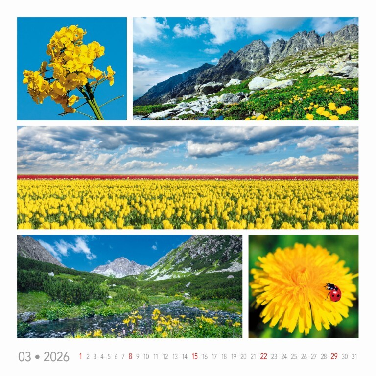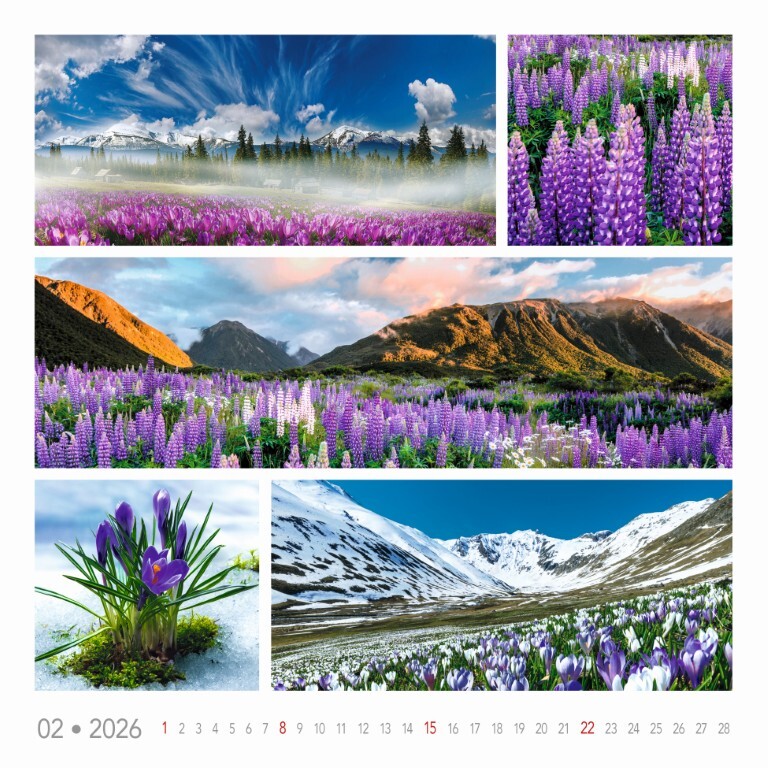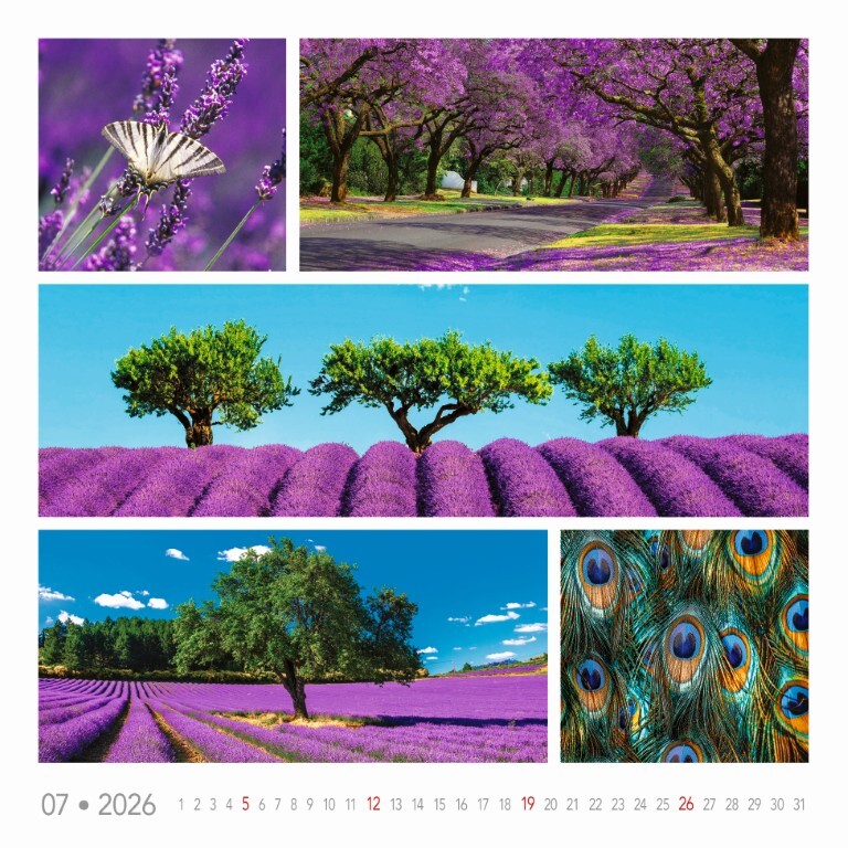 Kalendář, který vám každý měsíc přinese okouzlující směs barevných scenérií - od zimní krajiny a třešňových květů až po exotická místa a levandulové louky. Ideální pro každého, kdo miluje přírodu v jejích nejbarevnějších barvách.