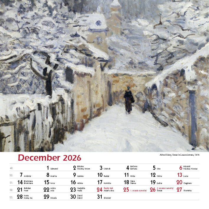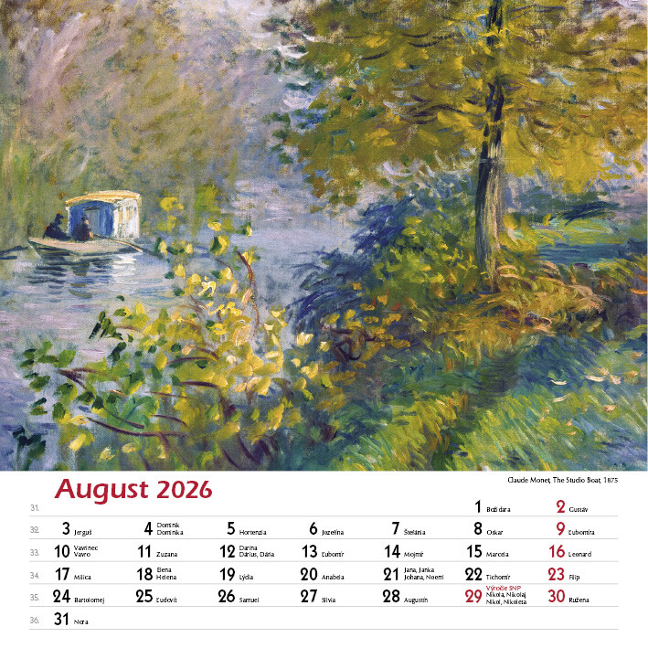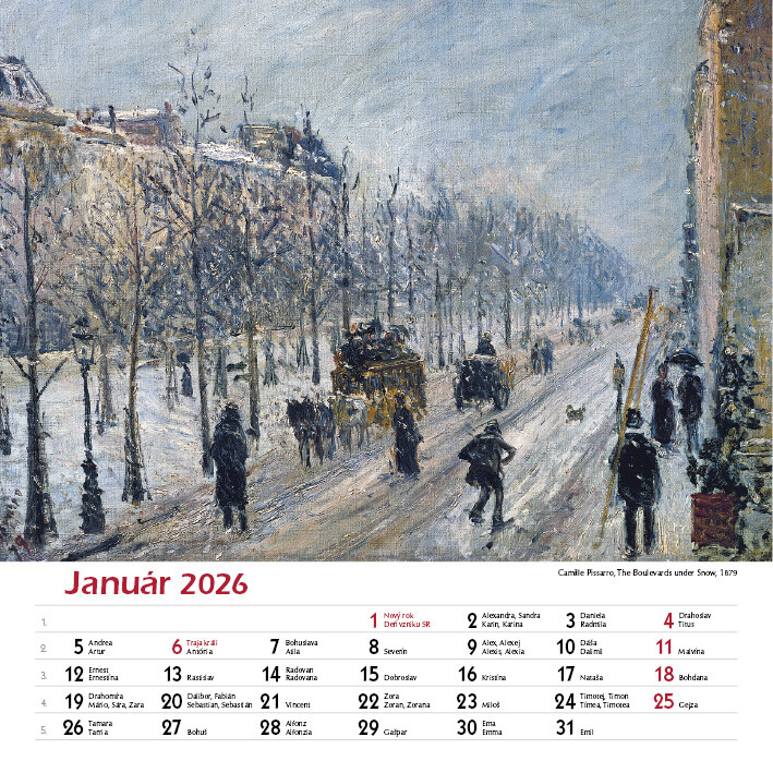 Zažijte rok s největšími impresionisty. Objevte krásu impresionismu každý měsíc s výběrem děl nejslavnějších mistrů tohoto uměleckého směru. Světlo, barvy a emoce zachycené štětci Clauda Moneta, Pierra-Augusta Renoira, Paula Gauguina a dalších vás budou provázet celým rokem. Ideální dárek pro milovníky umění.
