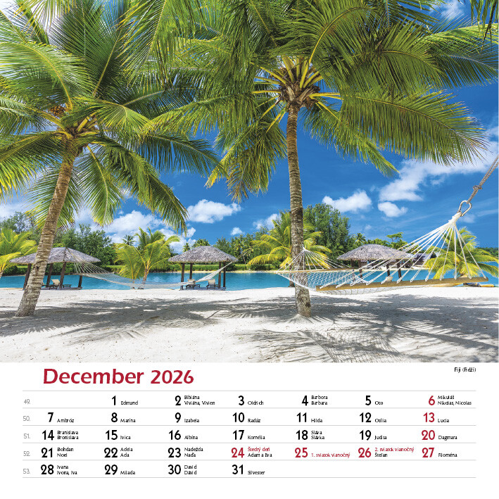 S tímto kalendářem plným rajských pláží a tropické atmosféry se můžete oddávat letnímu snění po celý rok. Letní snění vás zavede na nejkrásnější pobřeží světa - na bílé pláže Baham, do tyrkysových lagun Bora Bora, do palmových rájů na Fidži a do exotických zákoutí Srí Lanky. Ideální kalendář pro milovníky léta, cestování a snů o dovolené, která nikdy nekončí.
