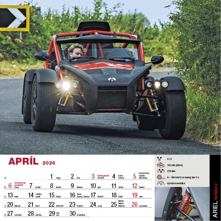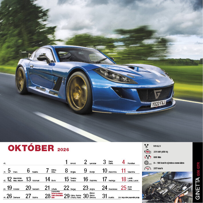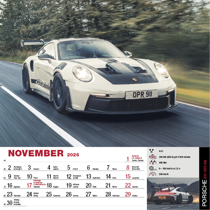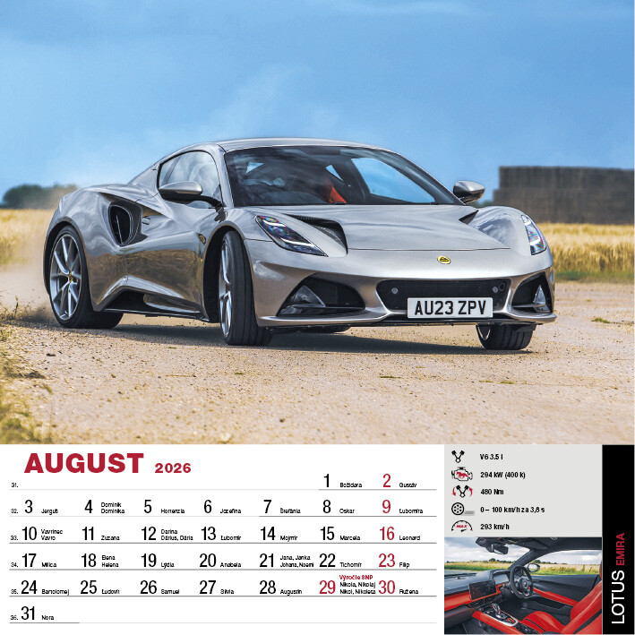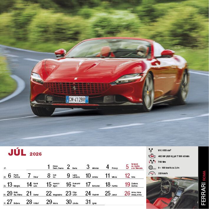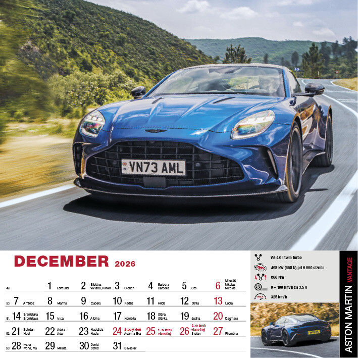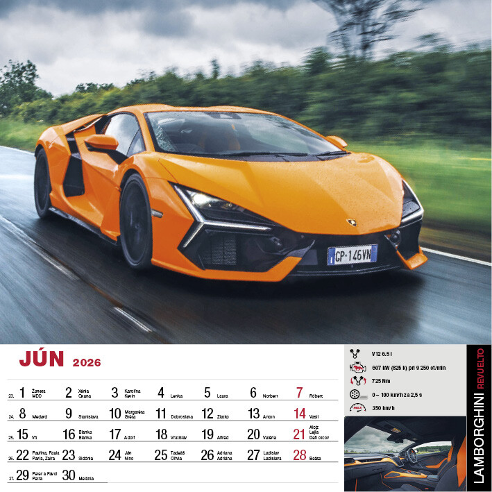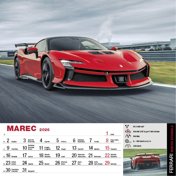 Kalendář SportCars představuje 12 pečlivě vybraných supersportovních vozů, které definují spojení výkonu, designu a technické dokonalosti. Každý měsíc obsahuje detailní fotografie vozů s výjimečnými výkony, od zrychlení přes aerodynamiku až po inovativní pohonné jednotky. Pro ty, které fascinuje precizní technika a svět sportovních vozů.