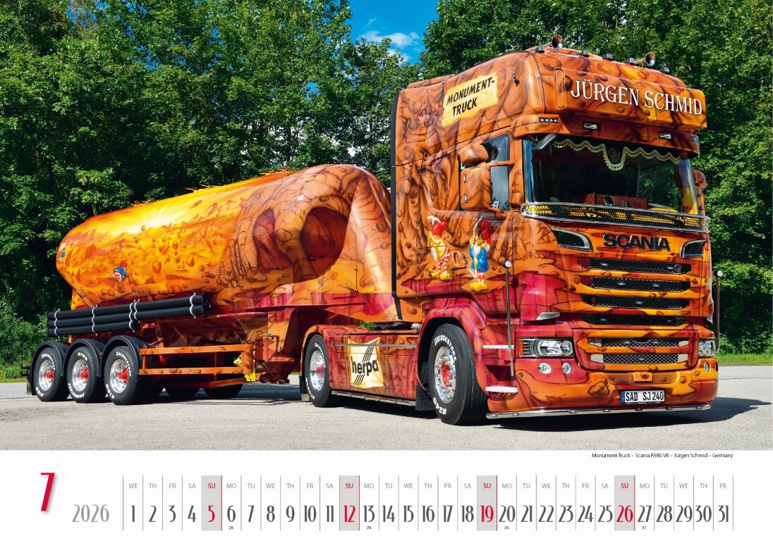 Kalendář pro všechny, kteří obdivují nejen sílu, ale i styl! Obsahuje 12 výjimečných nákladních vozů se zajímavým lakováním a originální airbrush grafikou, od divokých motivů až po umělecká díla na kolech. Ideální pro fanoušky trucků, motoristy a všechny, kteří mají rádi spojení techniky a designu.