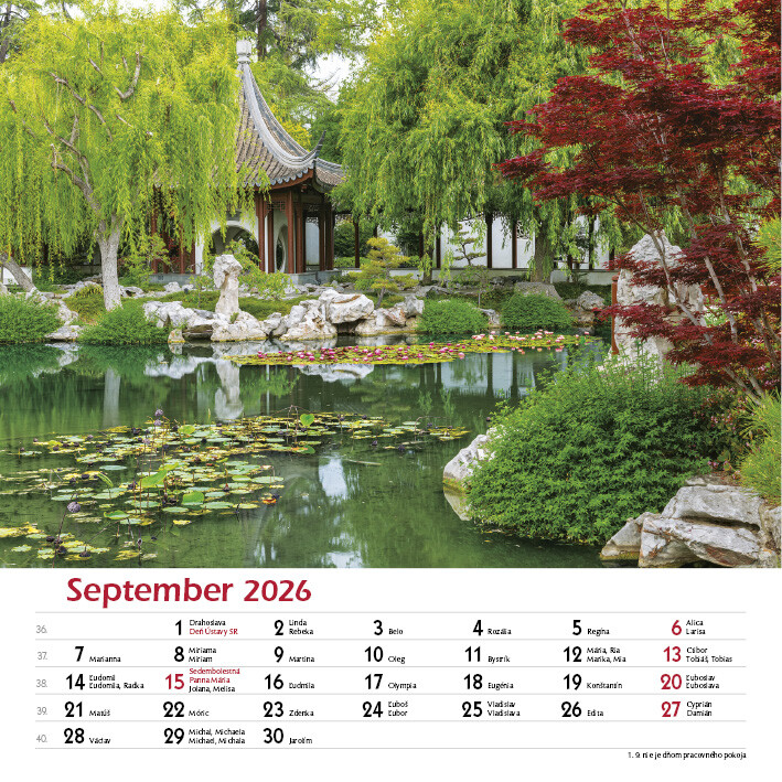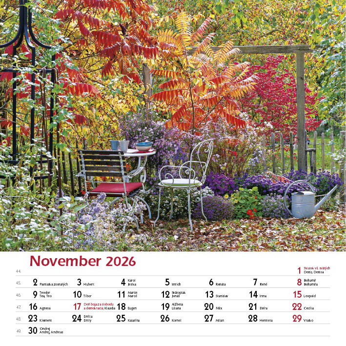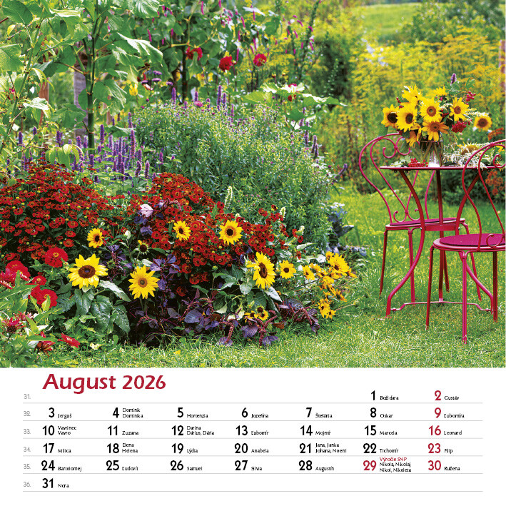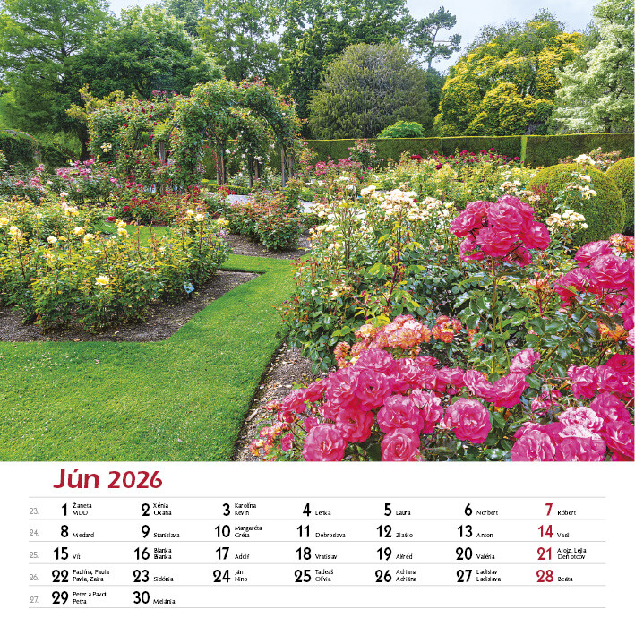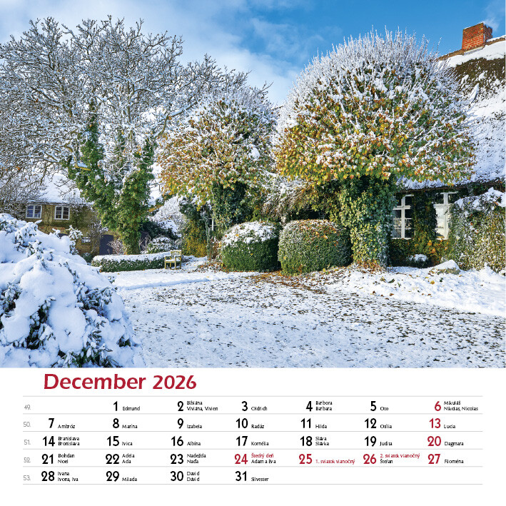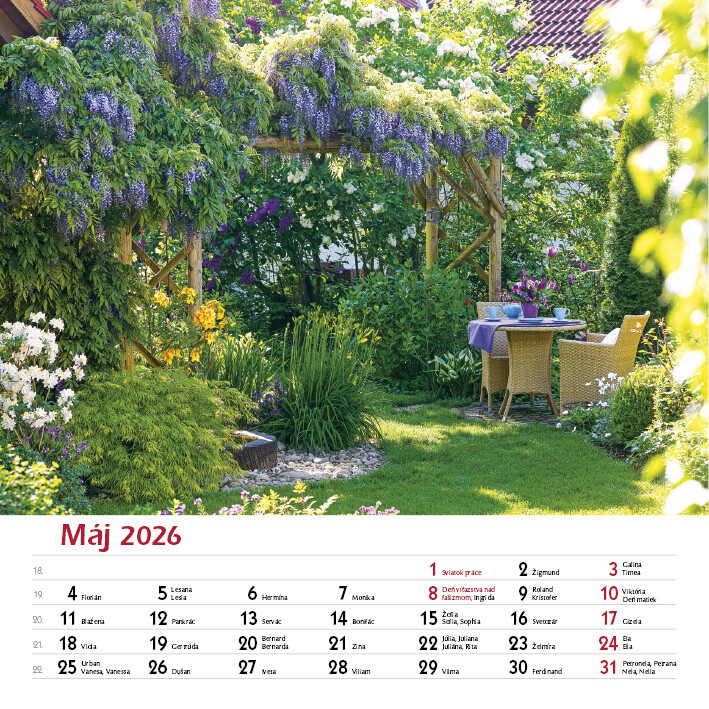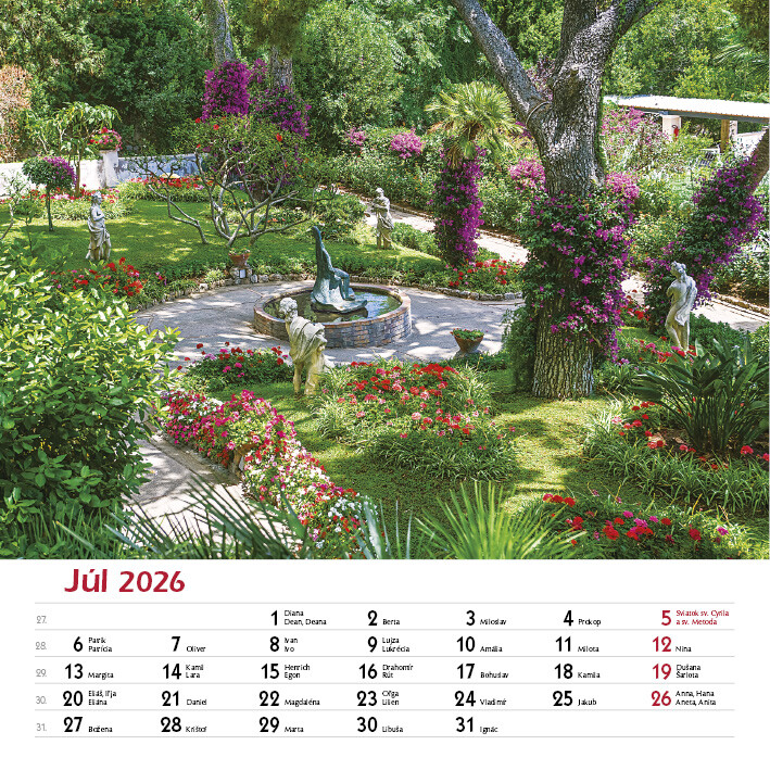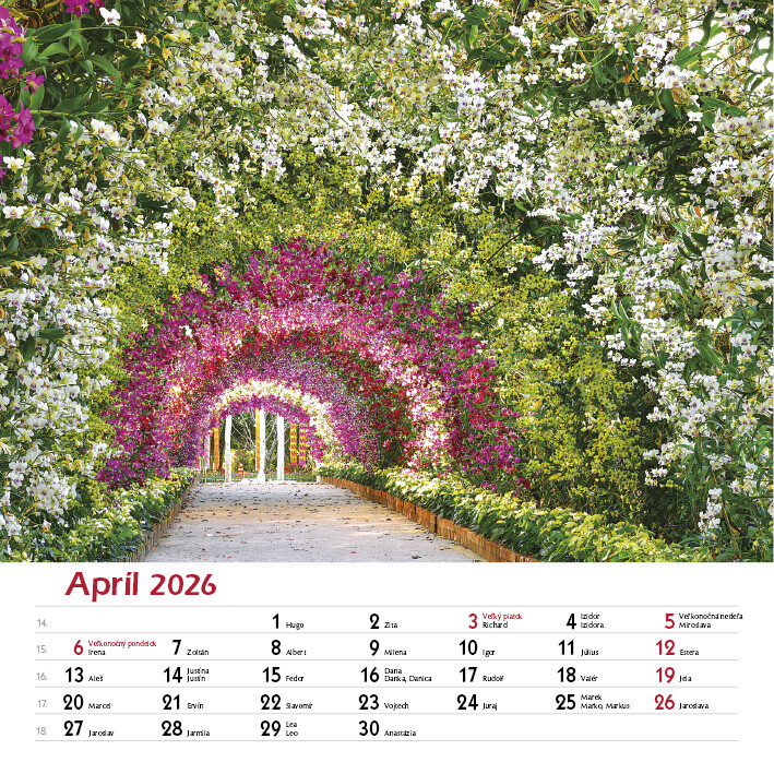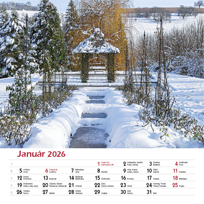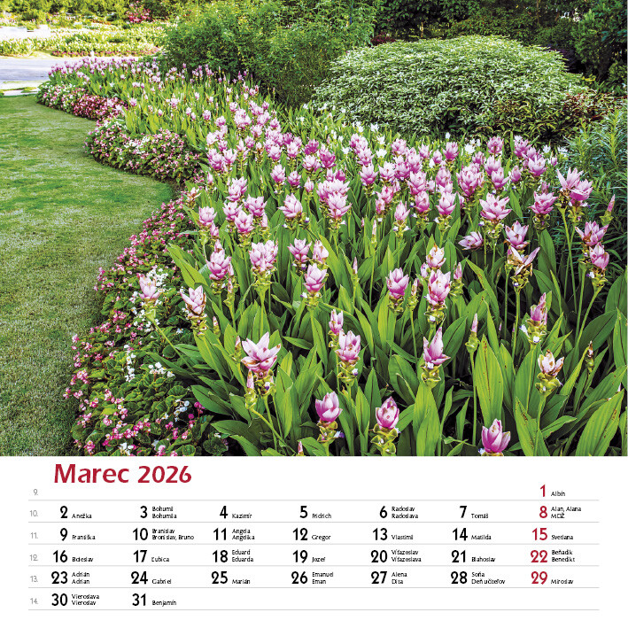 Potěšte své oči i duši pohledem na celoročně kvetoucí zahrady. Tento elegantní nástěnný kalendář obsahuje 12 nádherných fotografií zahrad v různých ročních obdobích - od jarních květů po klidnou zimní krajinu.
