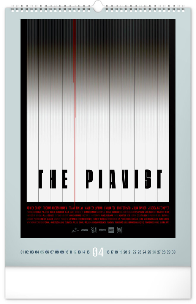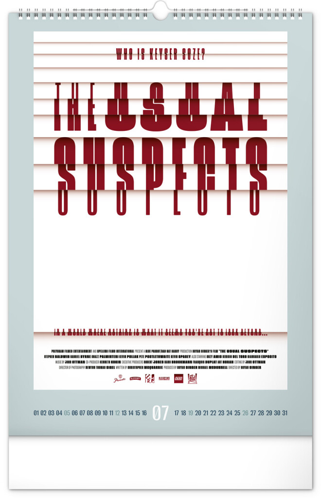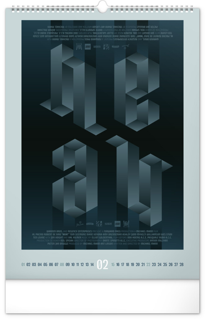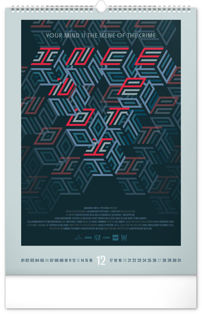 Nástěnný kalendář s alternativními filmovými plakáty od grafika Olega Slepcova představuje originální pojetí slavných filmů, jako jsou Loupež po italsku, Pianista, Interstellar, Obvyklí podezřelí nebo Můj soused Totoro. Každý měsíc nabízí jedinečné grafické ztvárnění, které osloví milovníky filmu i designu. Kalendář je stylovým doplňkem každého interiéru.