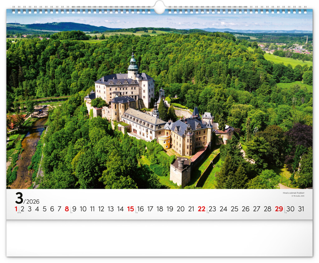 Velkoformátový kalendář obsahuje panoramatické fotografie krás a památek České republiky, které budete chtít navštívit. Vydejte se s námi na Grabštejn, do Fulneku, na Konopiště a do Jindřichova Hradce. Kalendář obsahuje jednoduché kalendárium a vznikl ve spolupráci se studiem YB, které se specializuje na fotografování míst a krajiny.