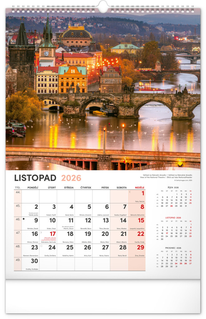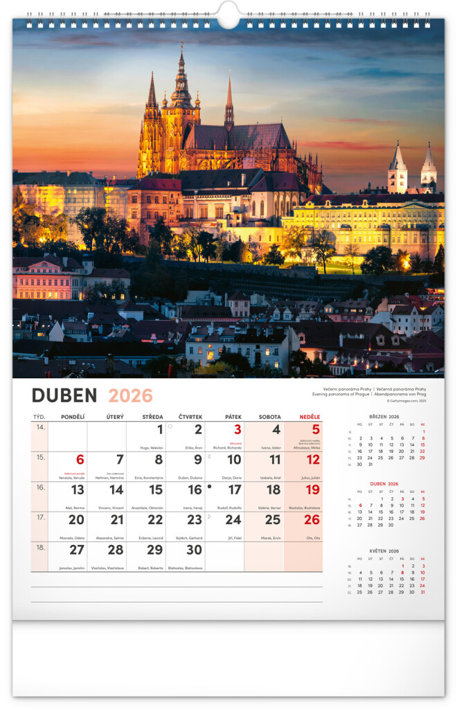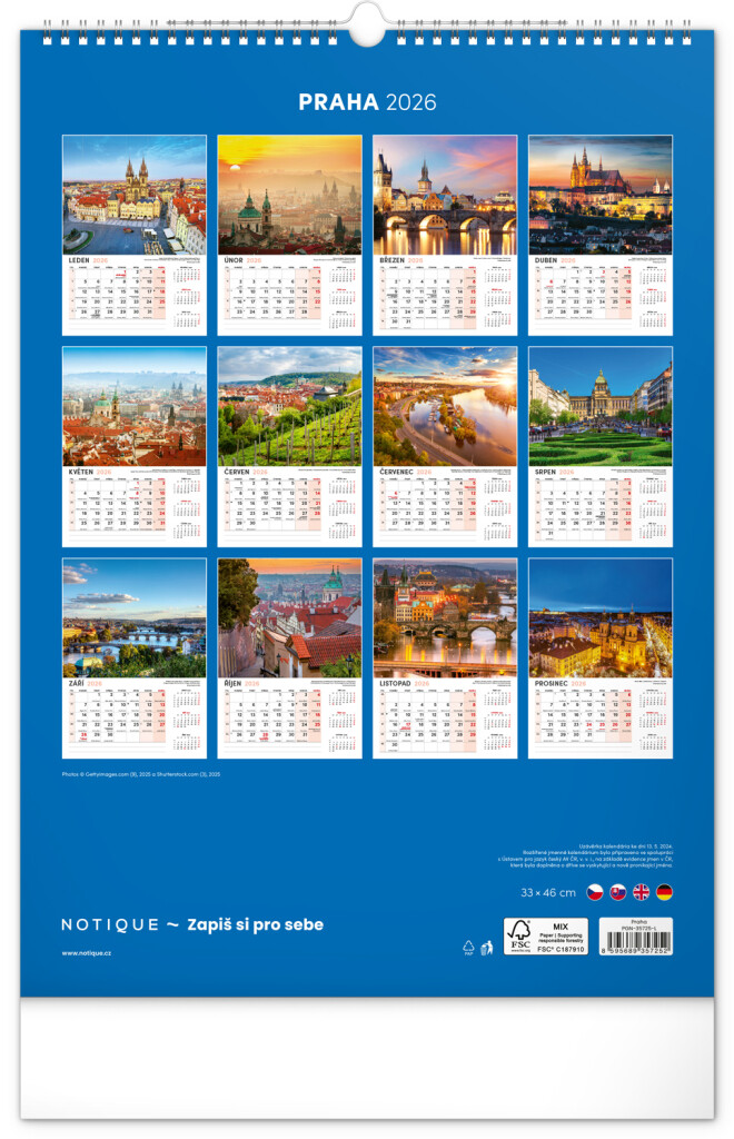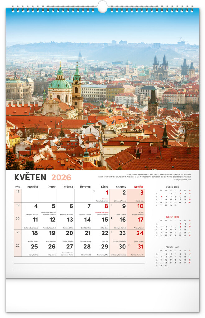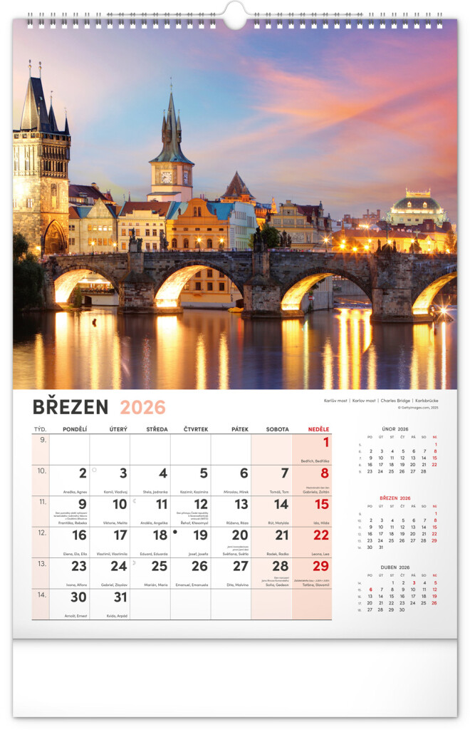 Kalendář, který vás provede slavnými památkami české metropole, která je právem jedním z nejkrásnějších měst Evropy. Prostřednictvím dvanácti fotografií v portrétním formátu navštívíte známé památky i neobvyklá zákoutí. Záběry Karlova mostu, Pražského hradu nebo Václavského náměstí jsou doplněny popisky ve čtyřech jazycích a jednoduchým bílým kalendáriem. Kalendář potěší všechny milovníky historie a architektury.