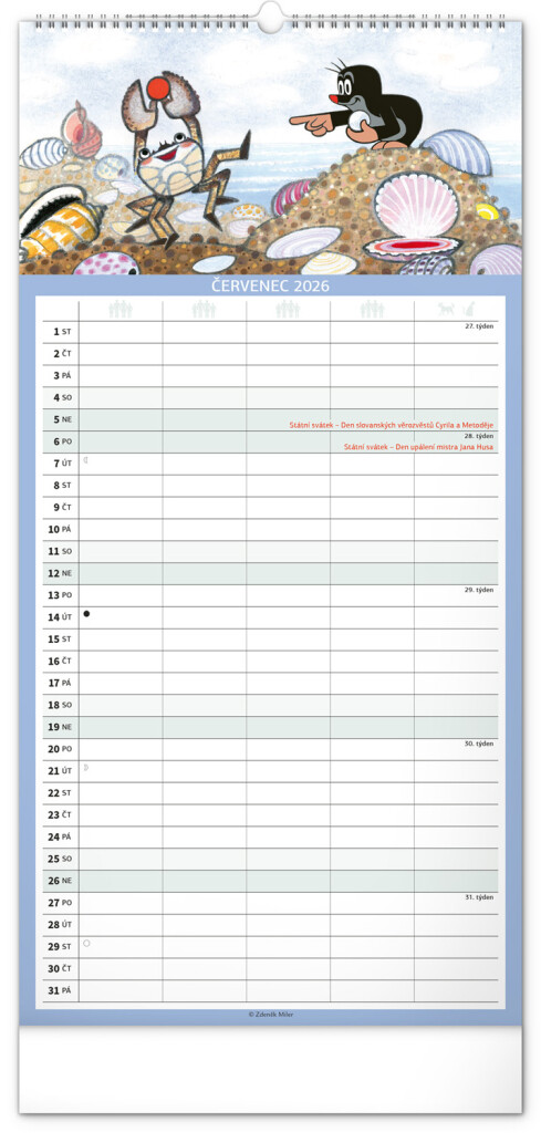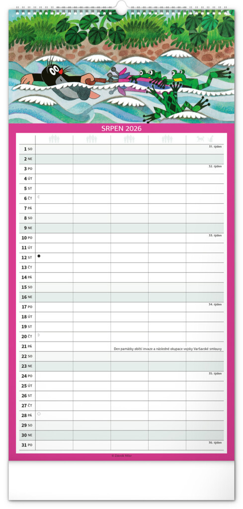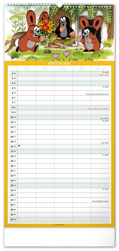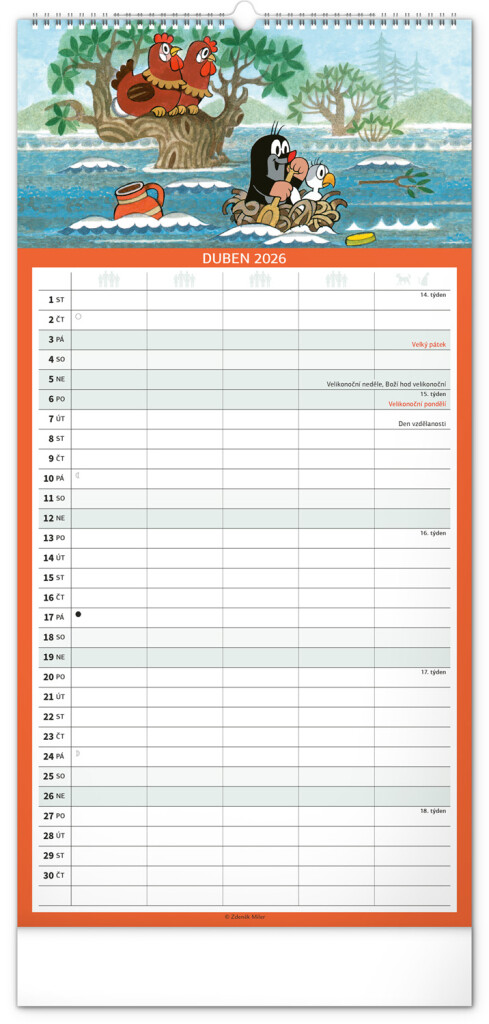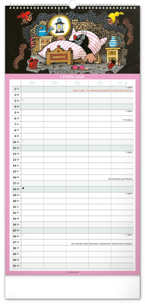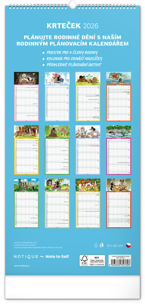 Je pro vás rodina na prvním místě? Uspořádejte si všechny rodinné aktivity v praktickém plánovacím kalendáři s klasickými ilustracemi Krtečka od Zdeňka Milera. Kalendář obsahuje český kalendář a samostatný plánovač aktivit až pro pět členů domácnosti.