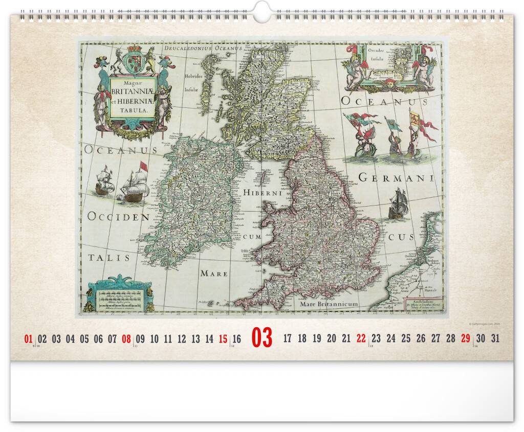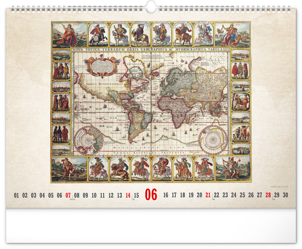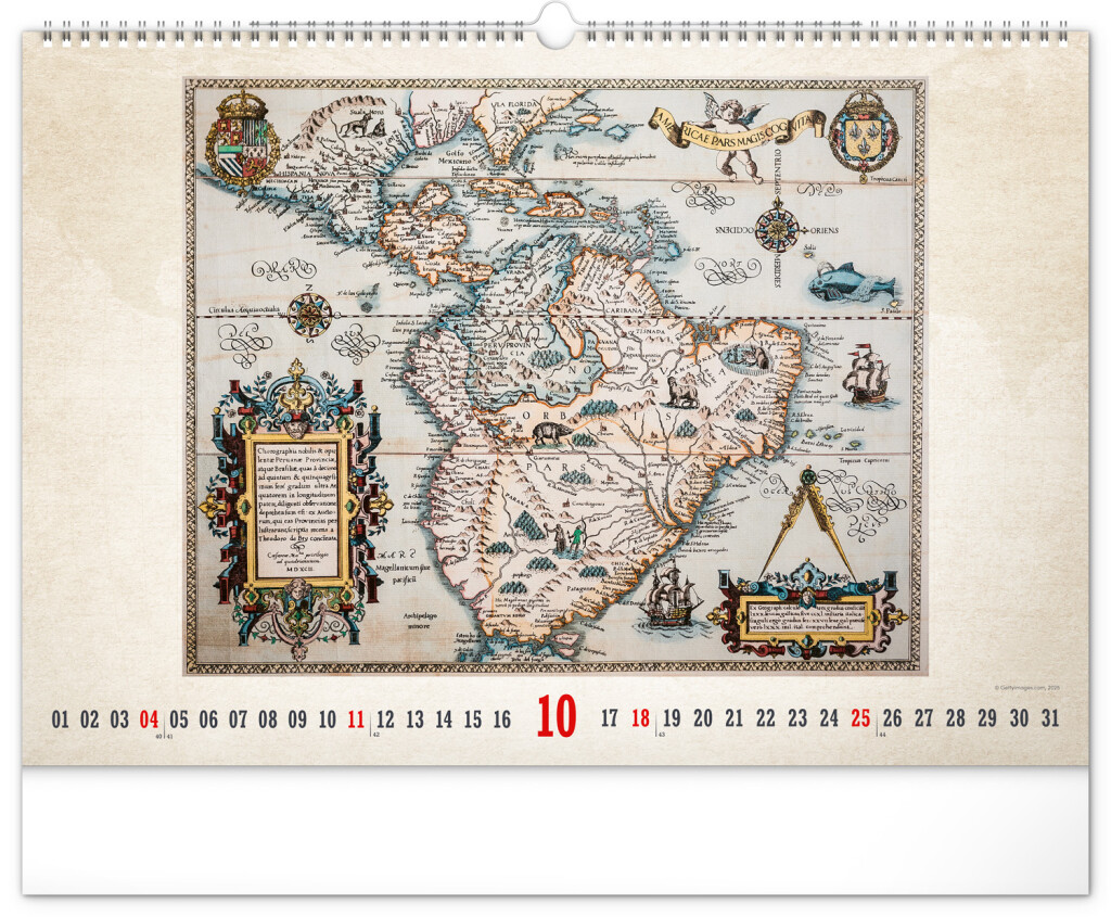 Kalendář pro všechny znalce ručně vyráběných map z dávných dob. Detailní kresby s estetickou hodnotou, ale potěší i milovníky užitého umění. Jednoduchý kalendář na bílém podkladu.