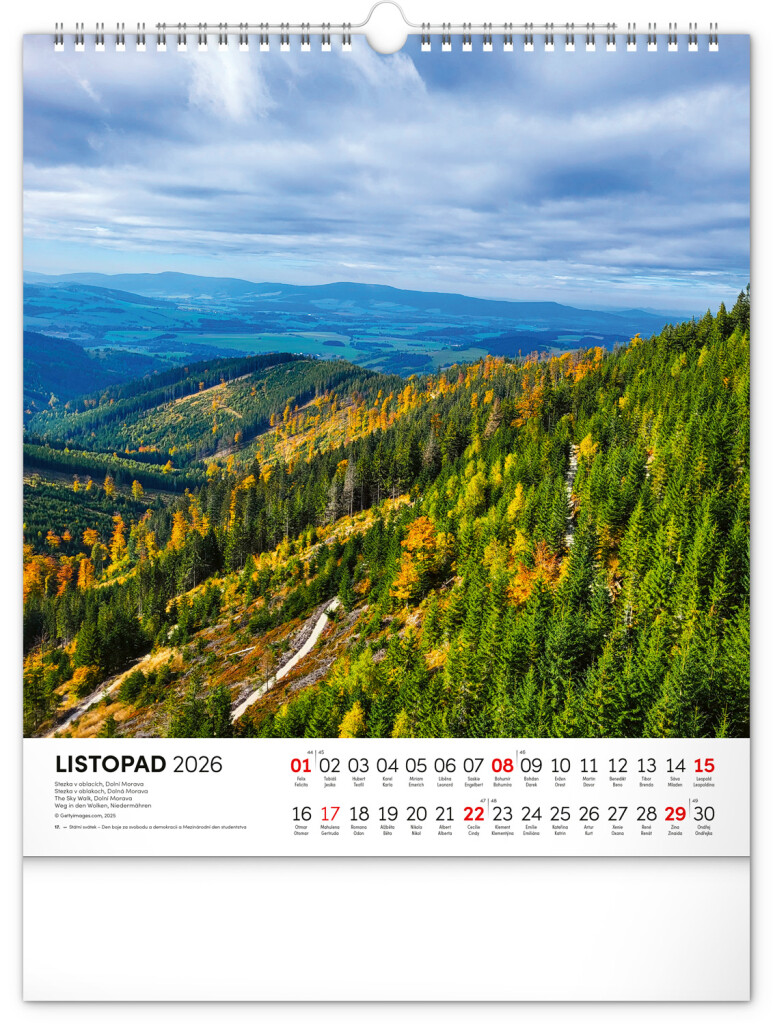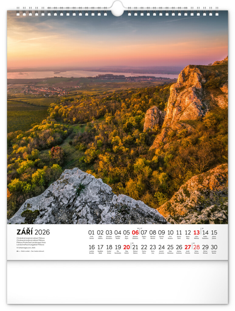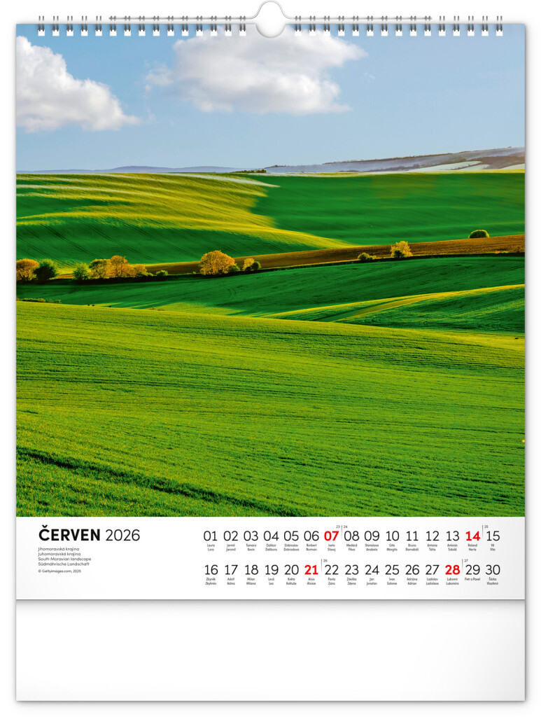 Nástěnný kalendář oslavuje krásy Moravy v celé její rozmanitosti. Uvnitř najdete dvanáct působivých fotografií moravské krajiny, které doprovází český kalendář s českými jmény. Praktický formát vhodný do každého