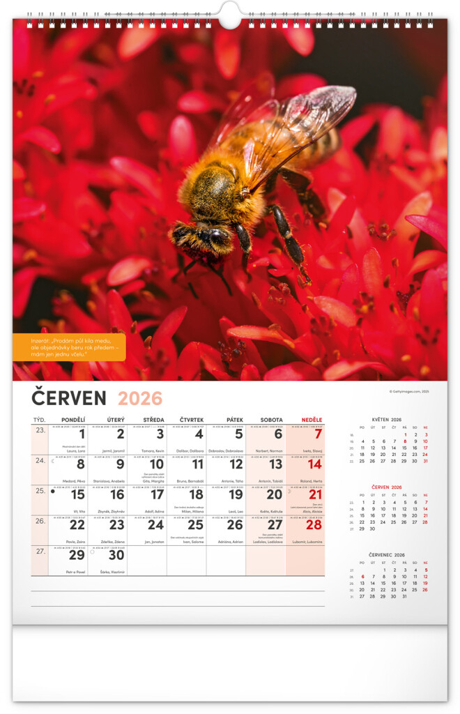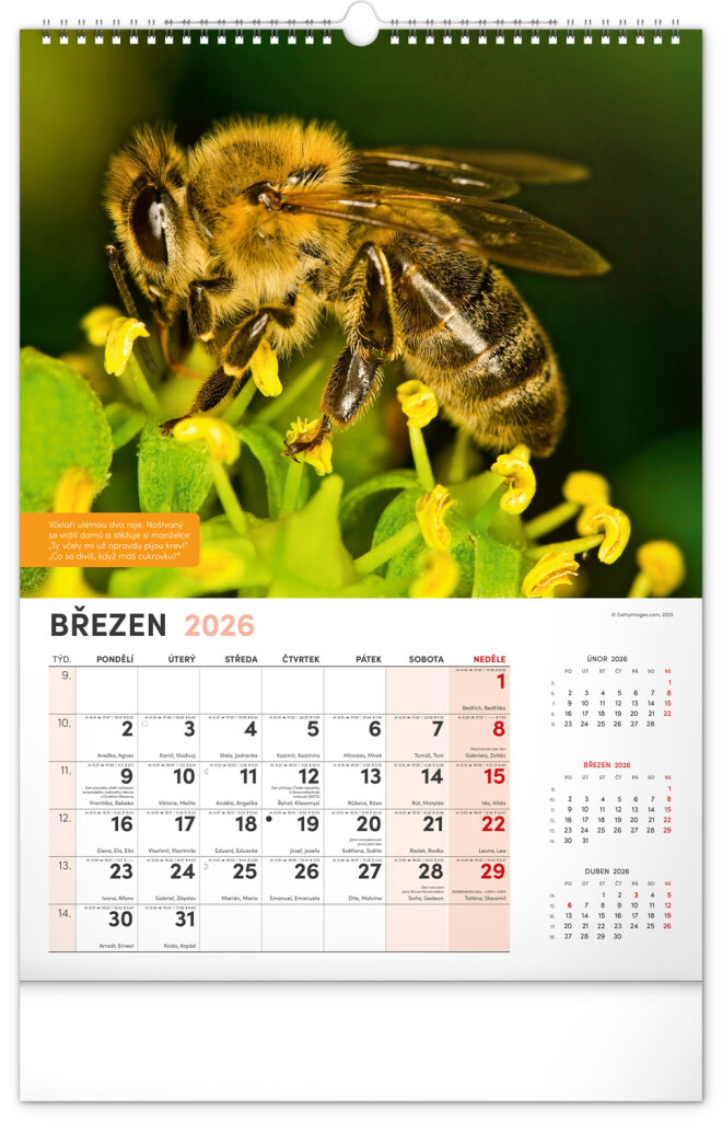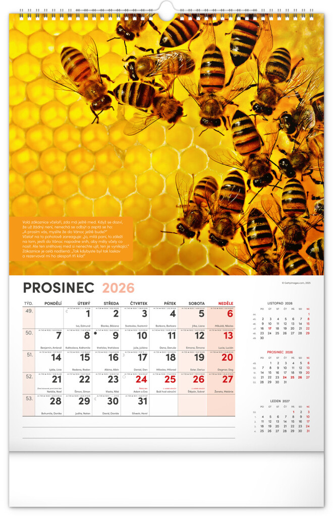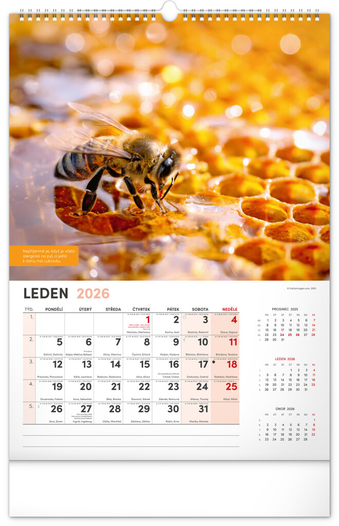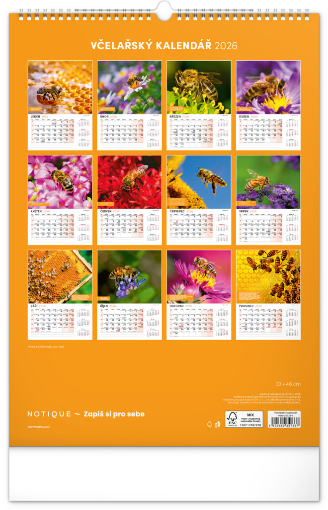 Nástěnný kalendář pro všechny začínající i pokročilé včelaře. Fotografie každého měsíce jsou doplněny příslovími, včelařskými moudry a tím, co by měl včelař v daném měsíci dělat. Součástí kalendáře je český kalendář se jmény a svátky, památnými dny a východy a západy slunce. A můžete začít včelařit!"