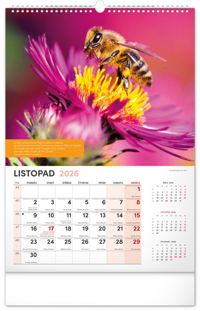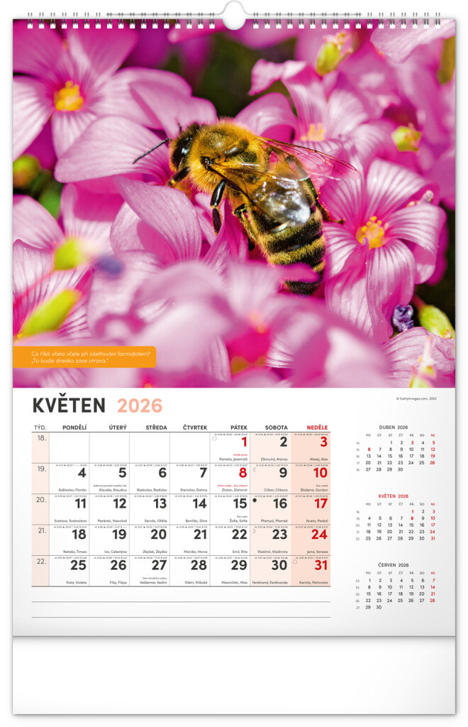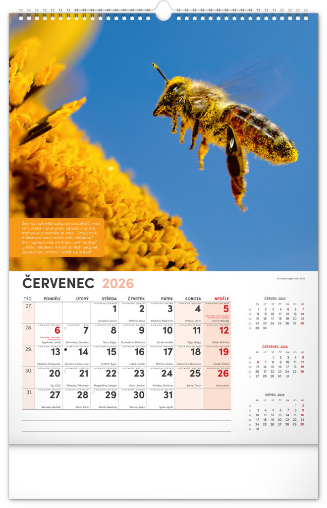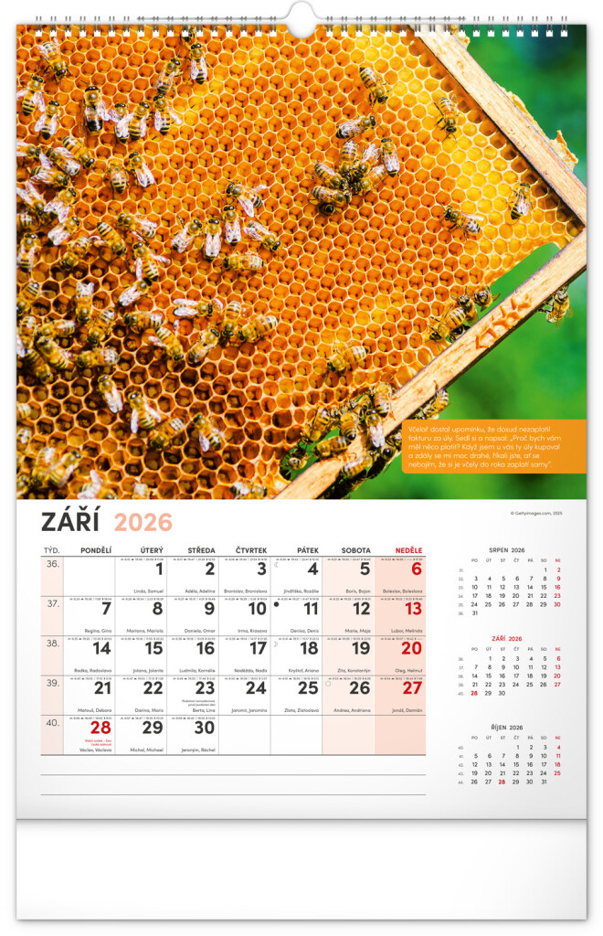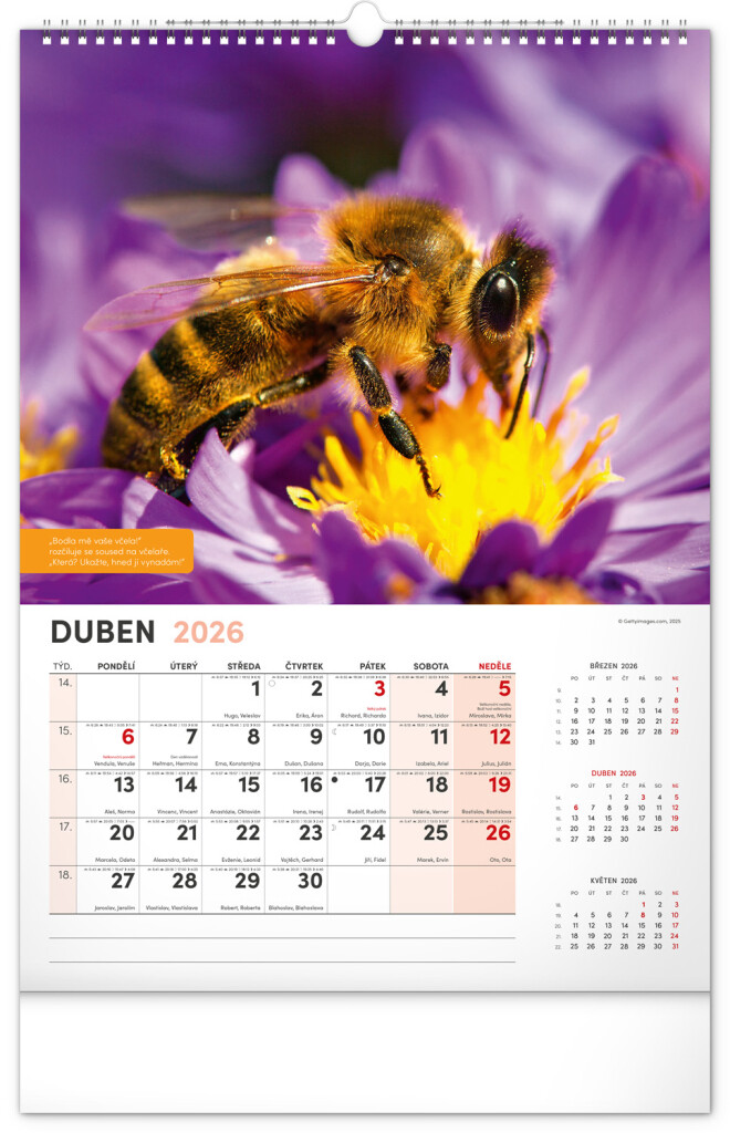 Nástěnný kalendář pro všechny začínající i pokročilé včelaře. Fotografie každého měsíce jsou doplněny příslovími, včelařskými moudry a tím, co by měl včelař v daném měsíci dělat. Součástí kalendáře je český kalendář se jmény a svátky, památnými dny a východy a západy slunce. A můžete začít včelařit!"