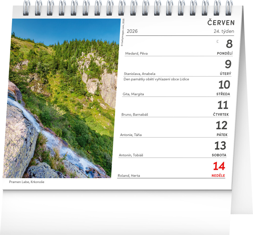 Nádherné fotografie zachycující zemi českých hor a pohoří. Kalendář obsahuje týdenní kalendářium s prostorem pro poznámky, svátky a památné dny, měsíční fáze a přehled na celý rok.