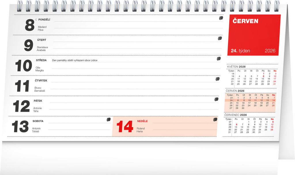 Stolní kalendář s řádkovým kalendáriem pro vaše všední i nevšední plány. Vše přehledně a na jednom místě. Dostatek místa na poznámky a praktičnost je u tohoto kalendáře samozřejmostí.