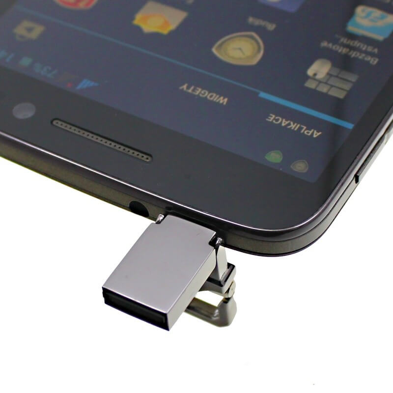 Novinka na trhu a skvělý dárek pro všechny, kteří jdou s dobou! Multifunkční MINI USB flash disk se standardním USB a micro USB konektorem pro připojení k mobilnímu telefonu, nebo tabletu. Výklopný mechanismus, karabinka pro zavěšení na klíče. OTG flash disky spolupracují s mobilními telefony a tablety, které podporují funkci OTG (Android 4.3 a vyšší - většina zařízení vyrobených od roku 2012). Díky této funkci tak můžeme snadno zvýšit kapacitu jejich paměti, či jednoduše přenášet fotky a další data. Možno připojit šňůrku - ideální jako přívěsek na klíče nebo mobil! Vhodný pro potisk nebo laser malého loga.