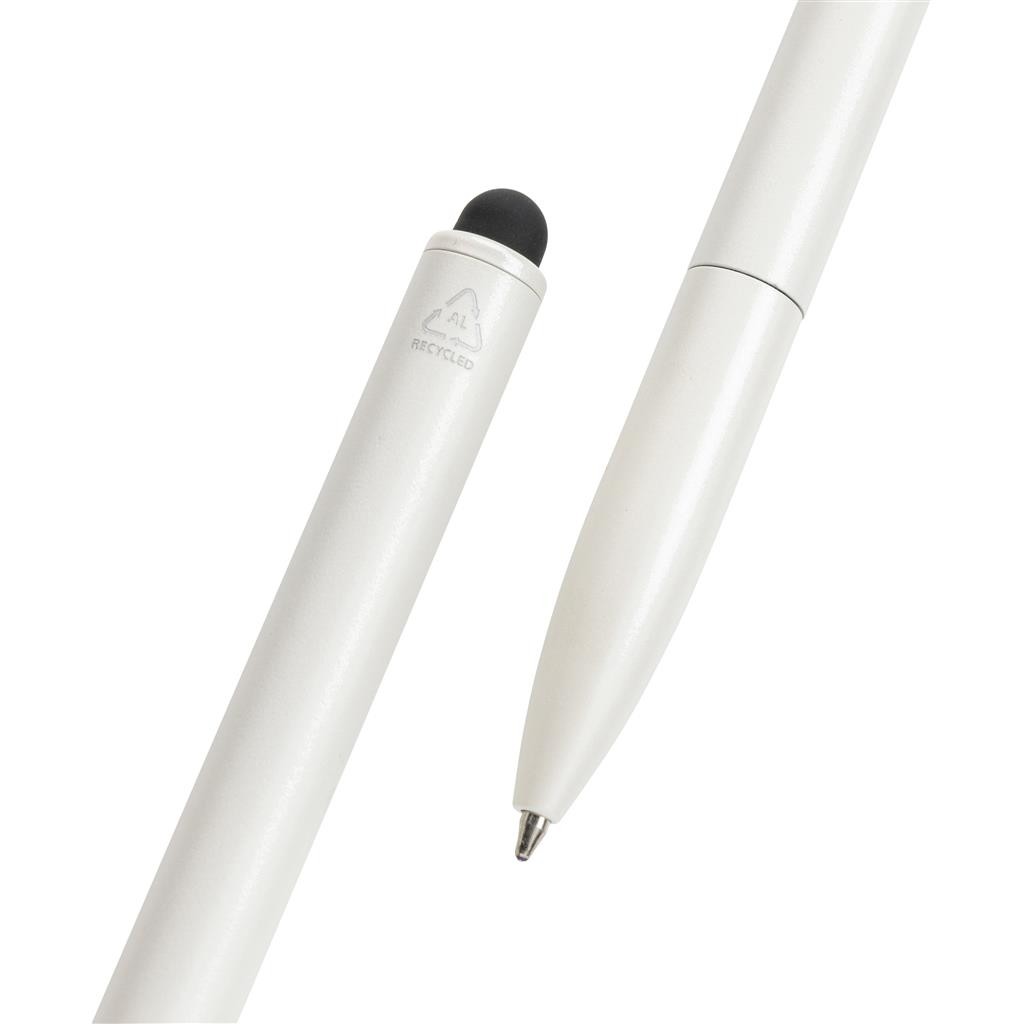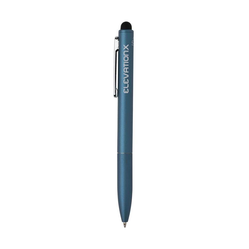 Pero s otočným mechanismem, šířkou hrotu 1mm, modrým inkoustem pro psaní až 700 m. Včetně stylusu. Vyrobené z RCS recyklovaného hliníku. RCS (Recycled Claim Standard) je globální standard, který umožňuje ověřit použití recyklovaného materiálu v produktu napříč celým dodavatelským řetězcem. Celkový podíl recyklátu dle váhy produktu: 27 %.