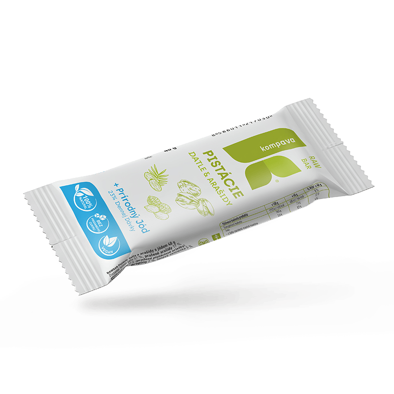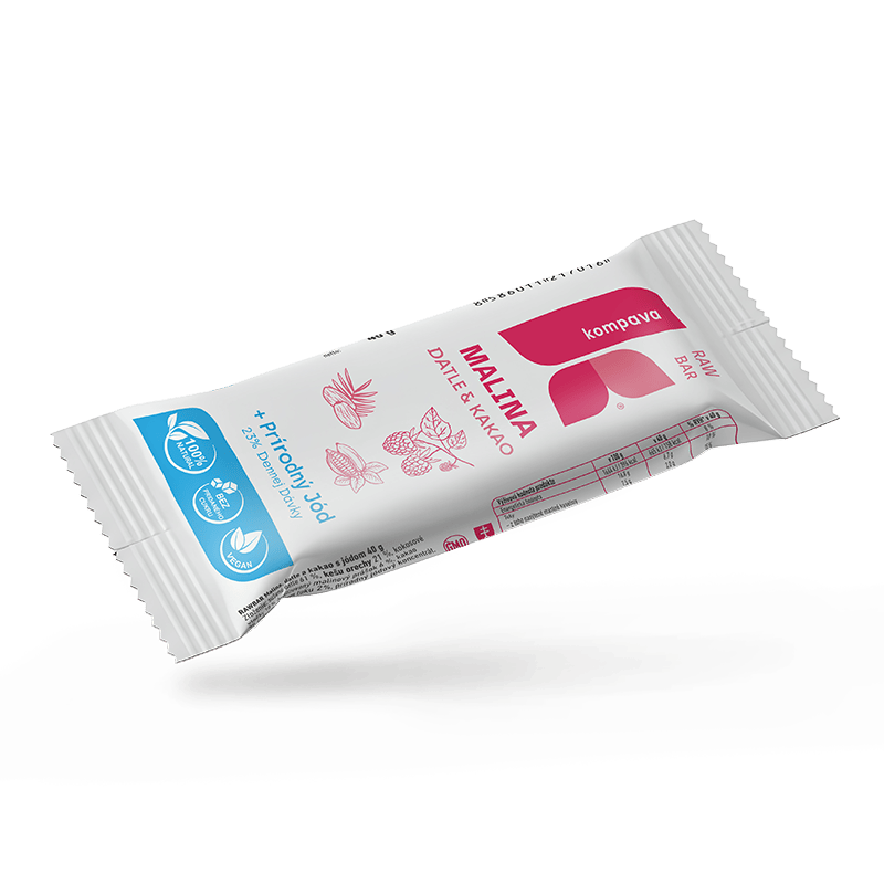 Tyčinka plná přírodní energie z datlí, ořechů a kokosu, obohacená o přírodní jód pro podporu správné funkce štítné žlázy. Vhodná pro vegany, bez lepku, laktózy a sóji. Datle dodávají rychlou energii, ořechy a kokos zajistí zdravé tuky, vlákninu a minerály. V nabídce ve třech příchutích: malina (datle, kakao), pistácie (datle, arašídy), extra kakao (datle, lískové oříšky). (uveďte do poznámky při objednávce)