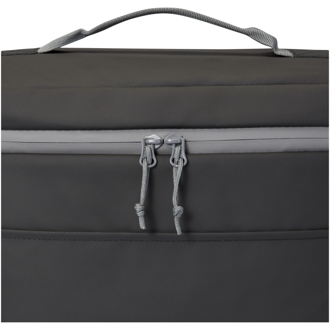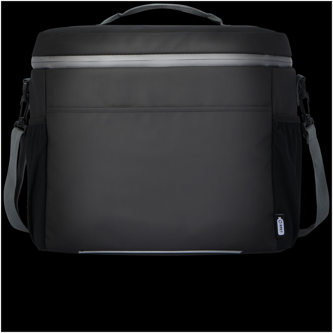 Voděodolná chladicí taška na 20 plechovek vyrobená z recyklovaných materiálů certifikovaných GRS, včetně zipů. Je vybavena prostornou přihrádkou na zip, která je vyložena tepelnou izolací PEVA s vysokou hustotou a pěnou vhodnou pro uložení potravin, která udrží nápoje a občerstvení chladné po celé hodiny. Má také 2 síťované kapsy a jednu otevřenou přední kapsu, která poskytuje další úložný prostor. Díky popruhu a nastavitelnému a polstrovanému ramennímu popruhu je nošení velmi pohodlné. Z recyklovaných materiálů GRS je vyrobena hlavní tkanina, podšívka, popruhy a zipy. Kapacita: 22 litrů. Neobsahuje PVC.