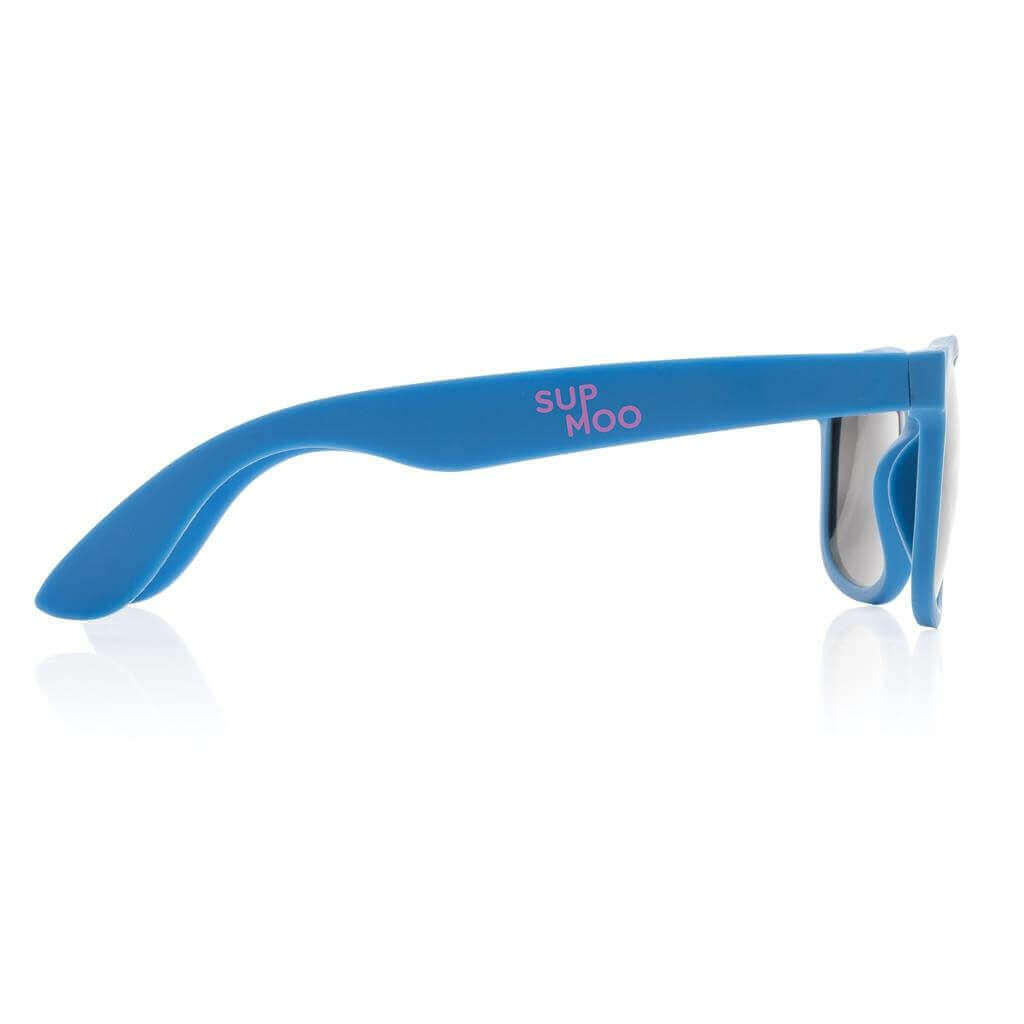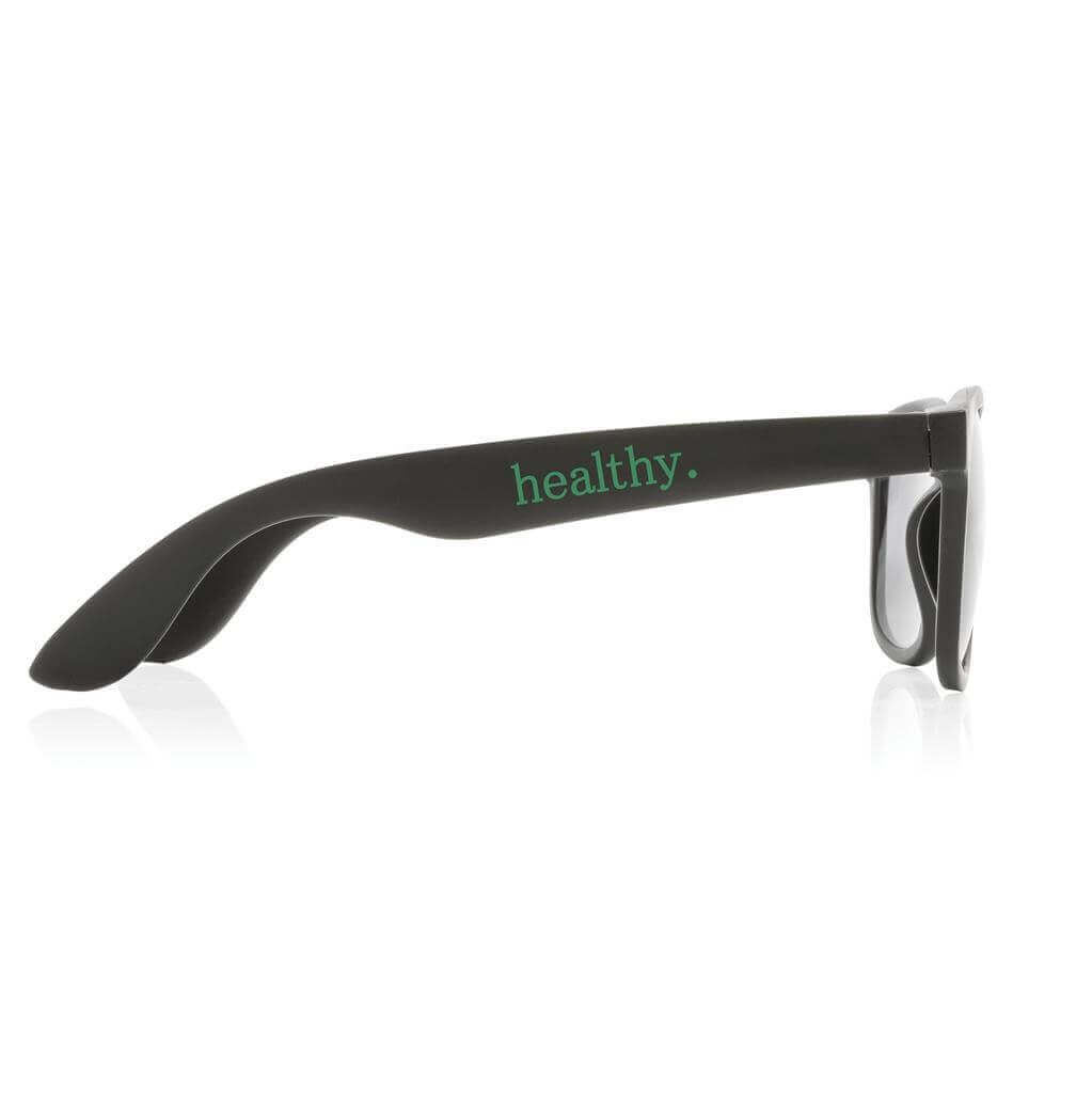 Sluneční brýle vyrobené z GRS recyklovaného PP plastu. GRS (Global Recycle Standard) je globální standard, který umožňuje ověřit použití recyklovaného materiálu v produktu napříč celým dodavatelským řetězcem. Celkový podíl recyklátu dle váhy produktu: 66 %. Samostatný rám je vyrobený ze 100 % recyklovaného PP plastu. Zatmavená akrylová sklíčka jsou v souladu s EN ISO 12312-1, UV 400 a CAT 3. Baleno v FSC® kraftové dárkové krabičce.