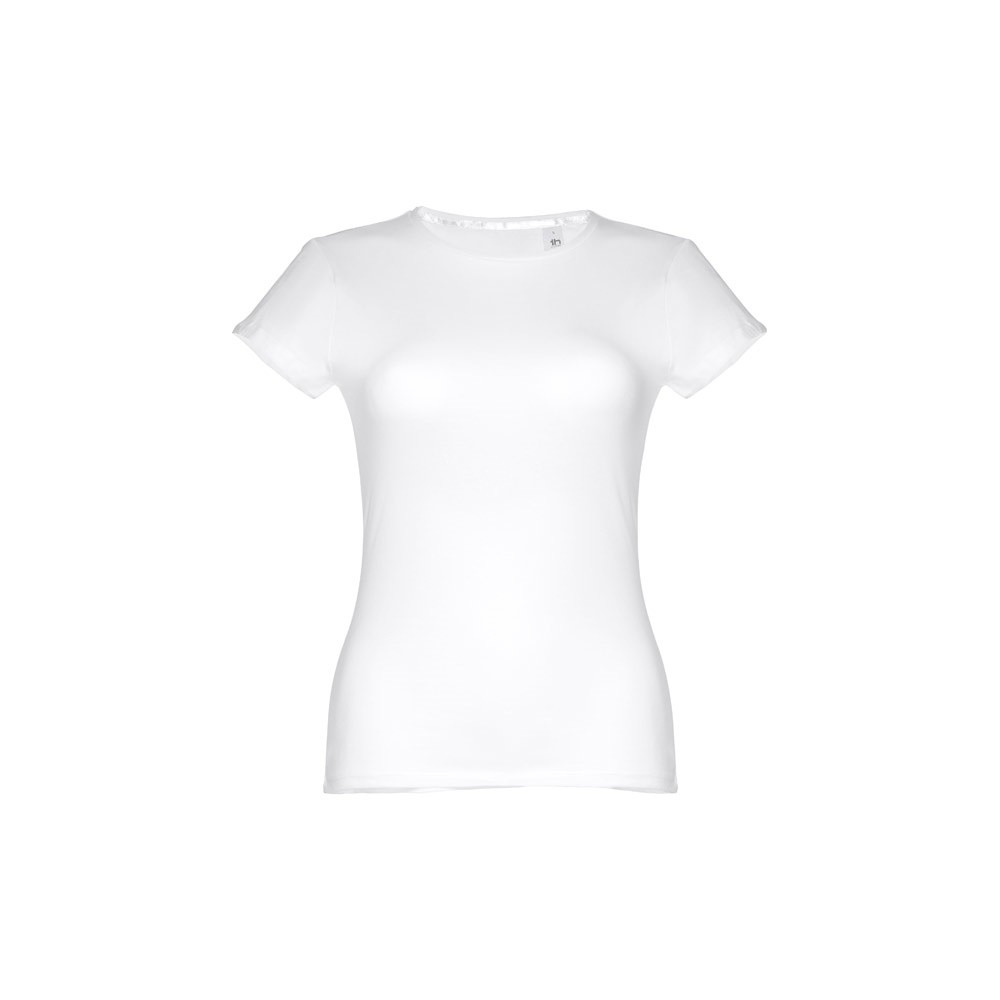 Dámské žerzejové tričko přiléhavého střihu ze 100% bavlny (150 g/m²). Tenký žerzejový límec se saténovým žebrováním. Dvojité prošití na rukávech a spodním lemu. Střiženo a sešito.