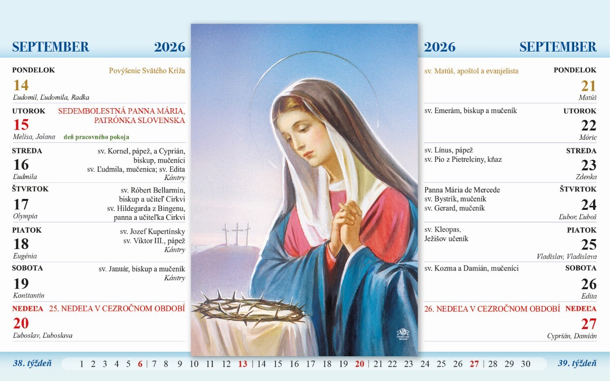 Římskokatolický stolní kalendář se slovenským jmenným kalendářem a církevními svátky... Kalendář: SKObsah: 15 listů