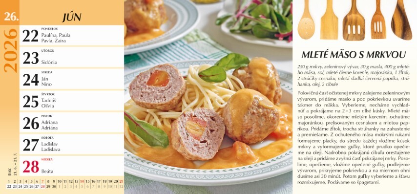 Tento praktický týdenní stolní kalendář je ideální pro všechny milovníky vaření. Obsahuje originální recepty na tradiční i moderní pokrmy, doplněné fotografiemi a srozumitelnými návody, které zvládne každý. Je to skvělý společník do kuchyně, který vám poskytne spoustu chutných nápadů po celý rok.