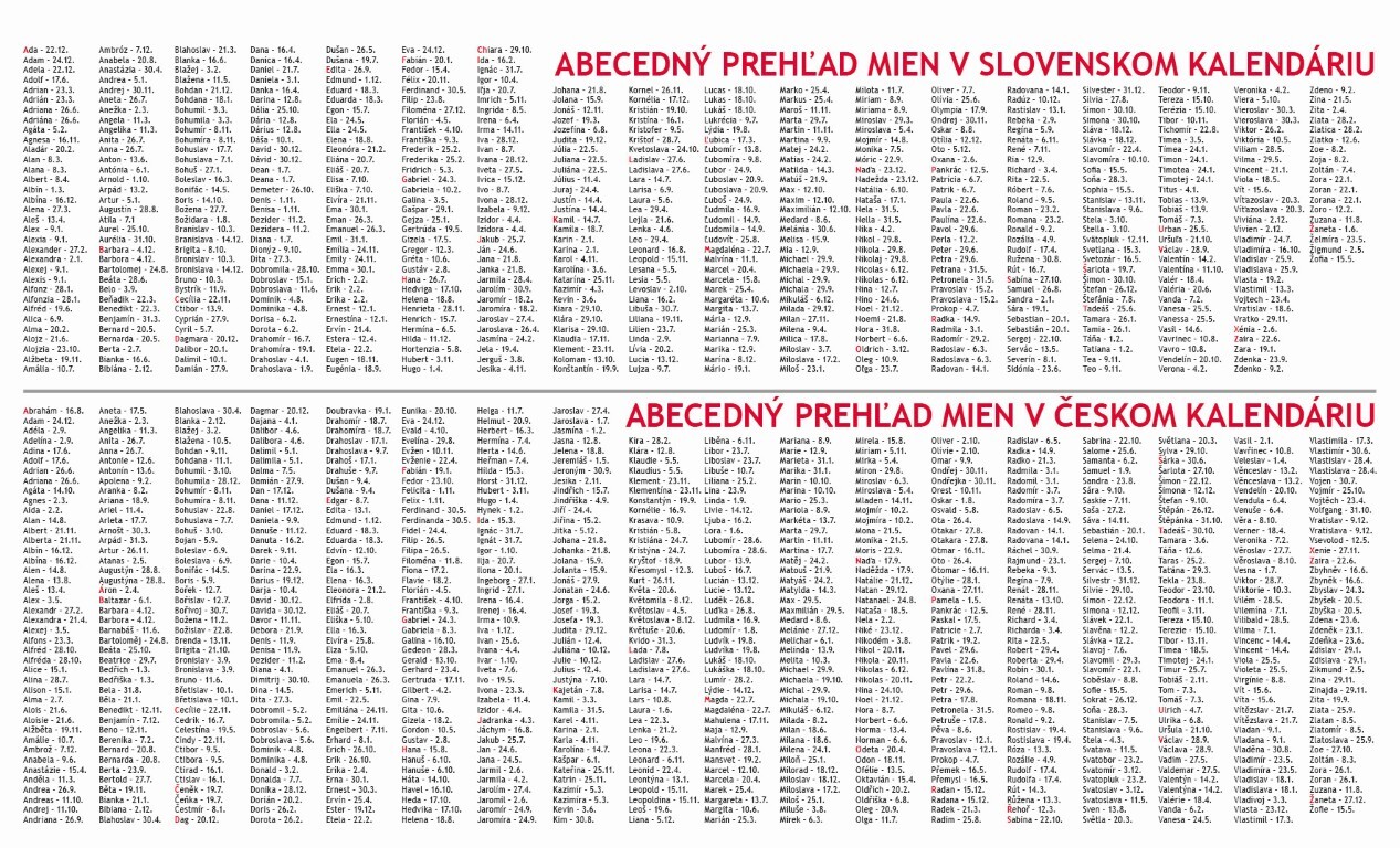 Kalendář: SK/CZ