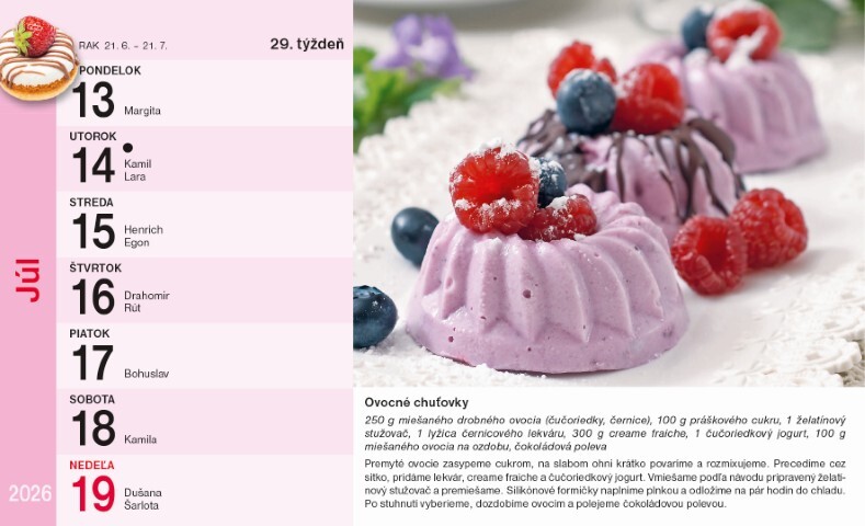 Sladká inspirace na celý rok! Tento týdenní stolní kalendář nabízí osvědčené recepty na lahodné dezerty a domácí moučníky, které si zamilujete na první ochutnání. Každý týden zde najdete nový recept doplněný lákavou fotografií výsledného dezertu, který vás jistě přiměje pustit se do pečení.
