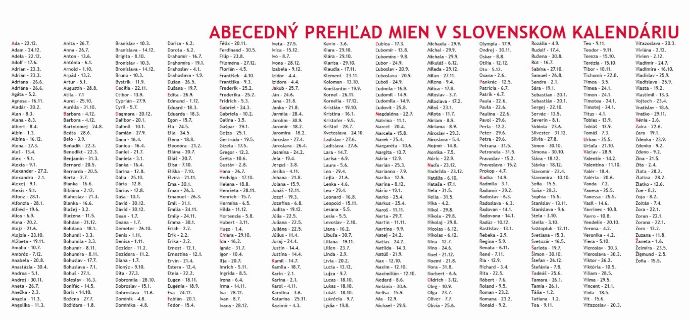 Kalendář: SK/CZ